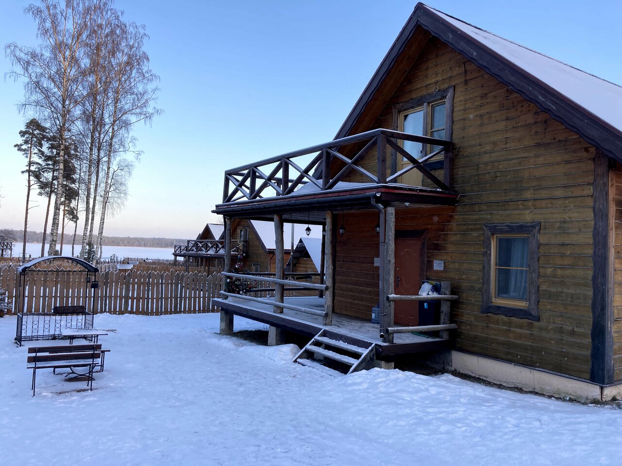 Домик отличный, просторный. Но есть свои минусы. Нет WiFi, холодно в холле (в зале, на кухне) дует от окон. Но в спальнях тепло. Розеток очень мало, пришлось просить удлинитель. Дали один которого не хватило. Территория огонь и вид на озеро. С животных берут по 1тр за сутки, не гуманно. У нас был последний дом у озера, летом вообще кайф наверное. У мангала нет освещения,что тоже минус. Дом снимали на НГ по этому и ожиданий может было больше… Но цена была супер приемлемая.