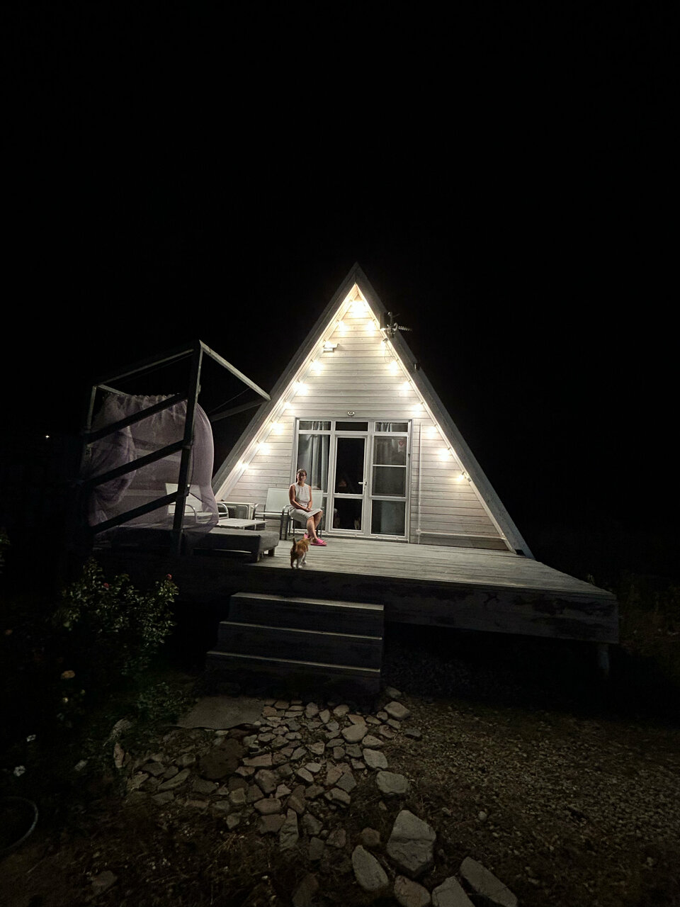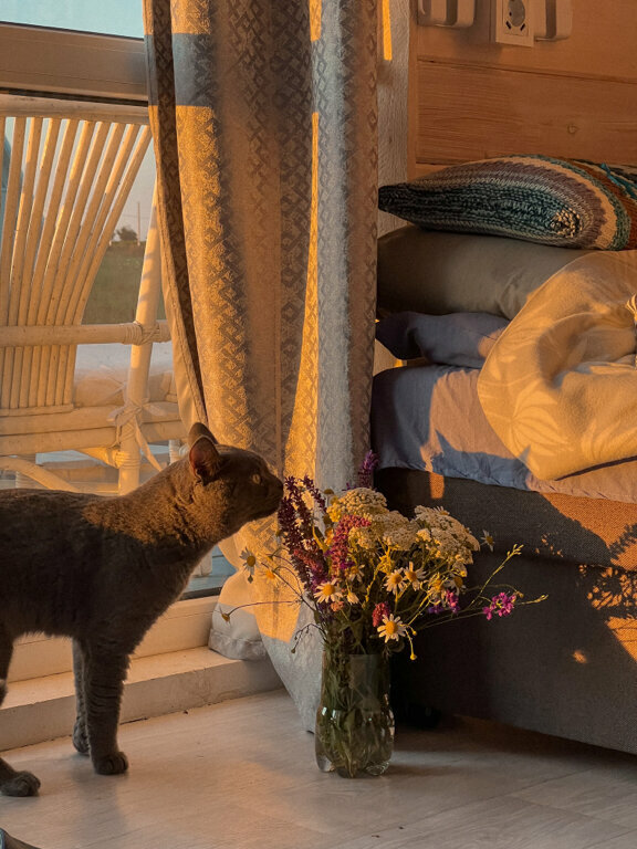Уединение, завораживающие виды, тишина. Отдыхали вчетвером плюс кот, всем очень понравилось! Чисто, уютно, очень тихий холодильник, сплит с регулировкой шторок (не дует на спящего днём), а ночью за домиком можно наблюдать потрясающее ночное небо, даже Млечный Путь виден!