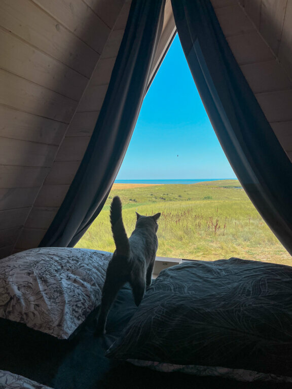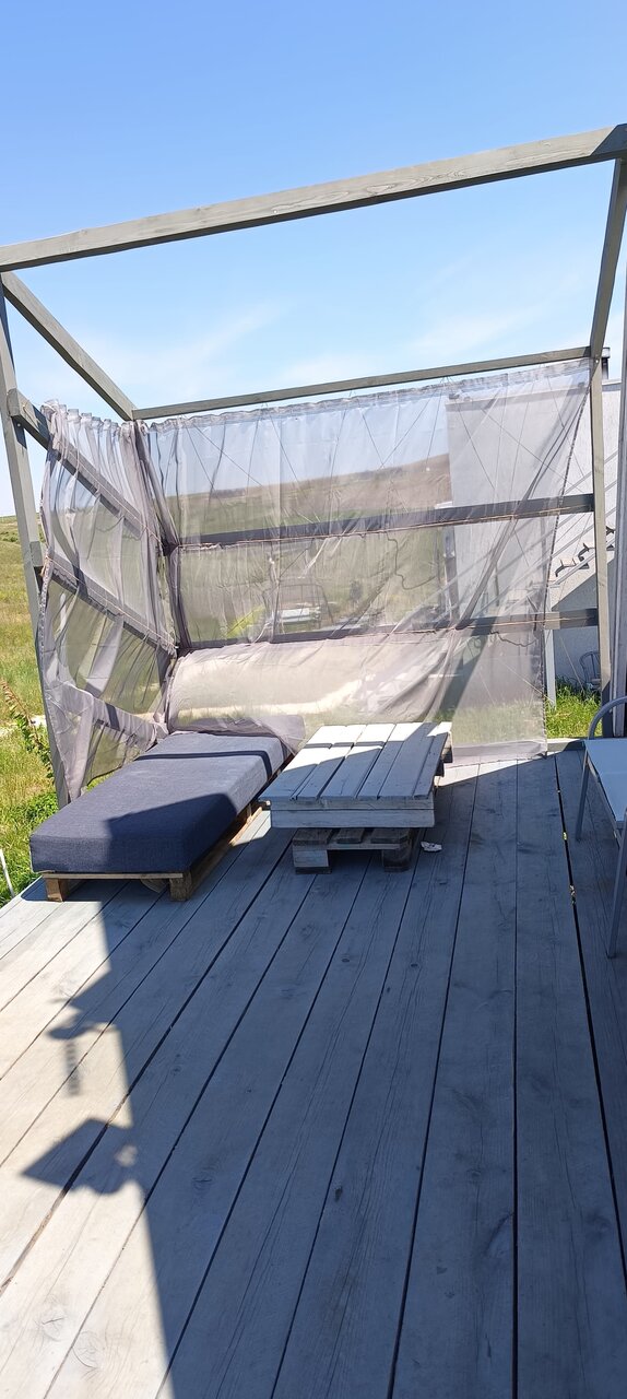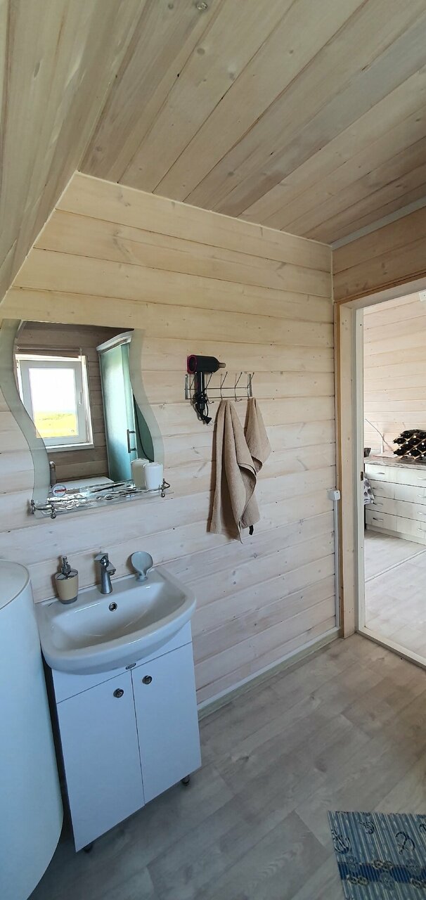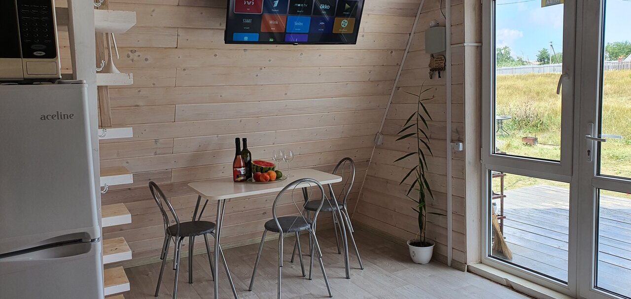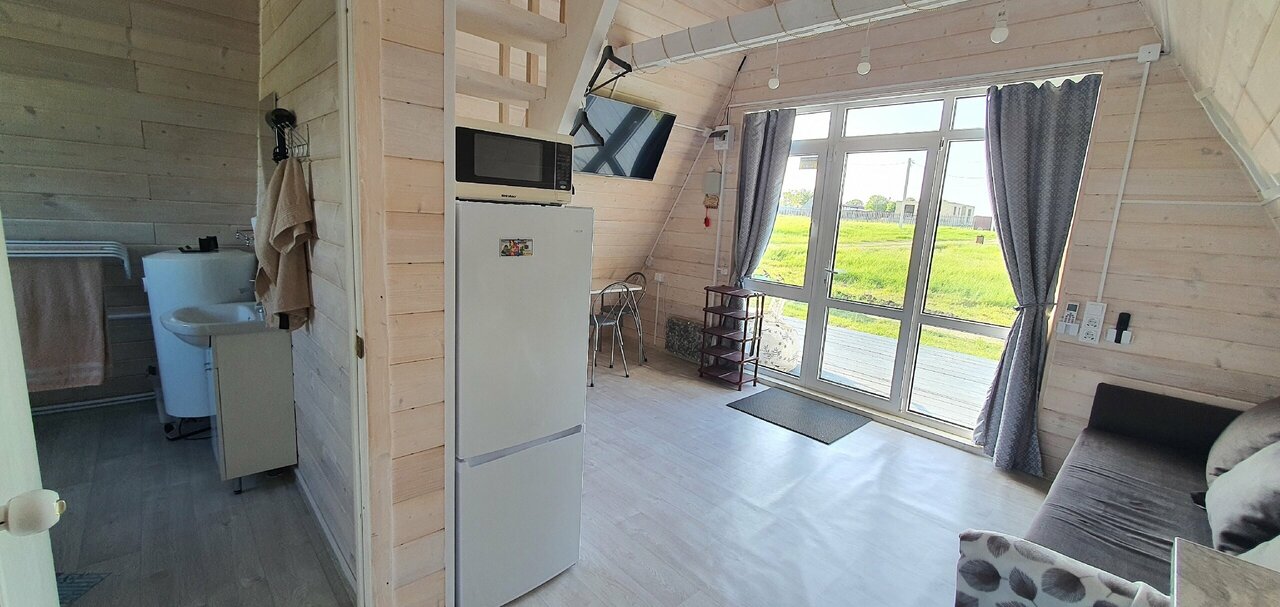 Если кто хочет отдохнуть от городской суеты и квадратных квартир, то вам именно сюда. Домики находятся в там красивом месте где открывается роскошный вид на морюшко и зелёные луга. Отдых в такой обстановке даст отдохнуть на все %.