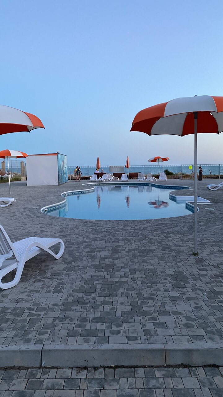 Отлично отдохнули. Море буквально в 50 метрах. Есть свой бассейн, детская площадка и взрослые турники. Цены и уровень сервиса доступные