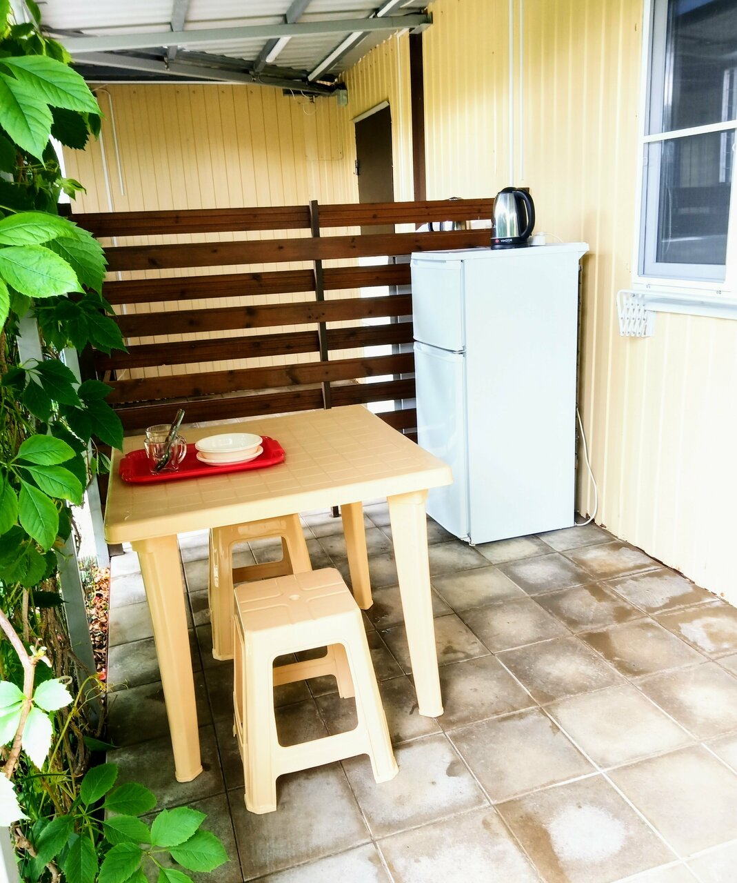 Чистые домики со всем необходимым и красивая цветущая компактная территория, очень удобно с маленьким ребёнком. Не для шумных компаний. На общей кухне (на 4 домика) много посуды, но сковороды все большие, не всегда удобно. В двухкомнатных домиках своя кухня. Хозяева отличные, отзывчивые. Вайфай на территории работает хорошо. Кондиционер, телевизор, водонагреватель тоже отлично. Немаленький холодильник с морозилкой в номере. До моря 5минут неспешным шагом. Нам все понравилось)