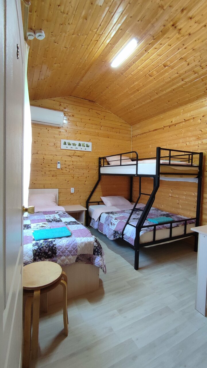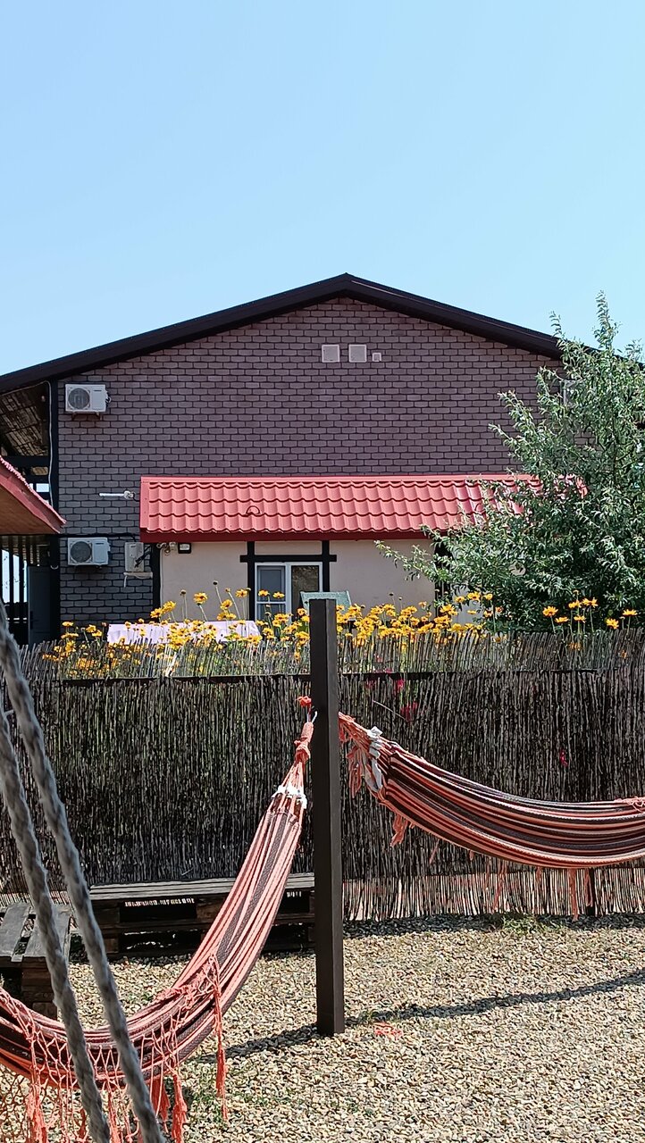 Отличное место для отдыха. Есть кухня для самостоятельного приготовления еды (газовая плита, холодильник, чайник, посуда, питьевая вода, раковина овина с горячей водой — есть все необходимое. На улице под навесом зона отдыха со столами и местами для сидения, где можно покушать, поиграть в настольные игры, посидеть компанией. В номерах есть индивидуальные холодильники, душ с горячей водой, туалет. Можно сдать свои вещи в стирку. Отзывчивые компанейские хозяева, все очень дешево и круто. Магазин с продуктами в шаговой доступности. До моря можно дойти пешком.