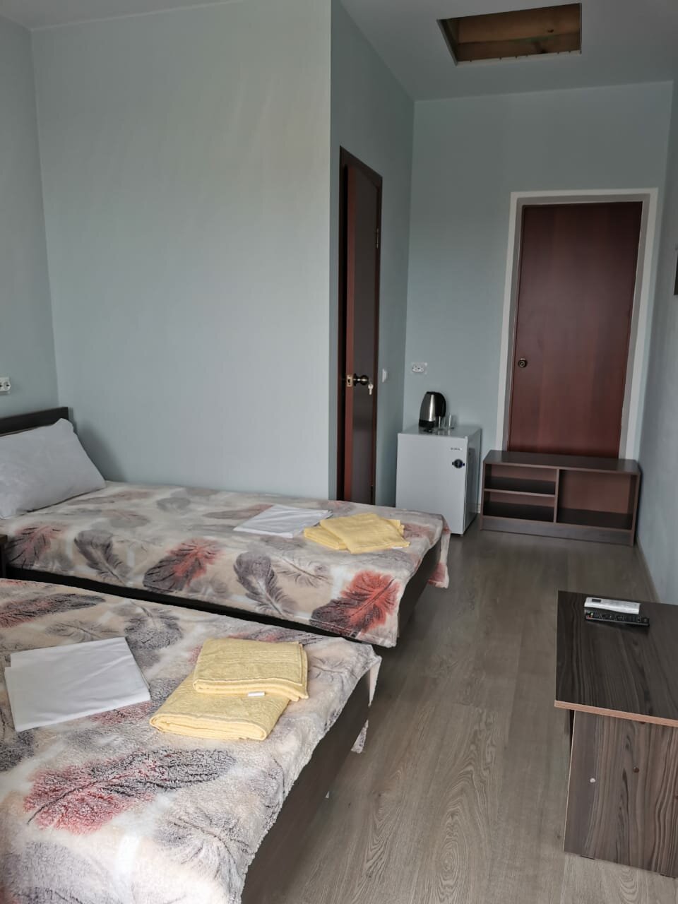 Однокомнатный номер, от 13 до 20 кв.м. В номере: 2 односпальные кровати, шкаф, столик, телевизор, холодильник, кондиционер. Санузел: ванна/душ, туалет. Без балкона.