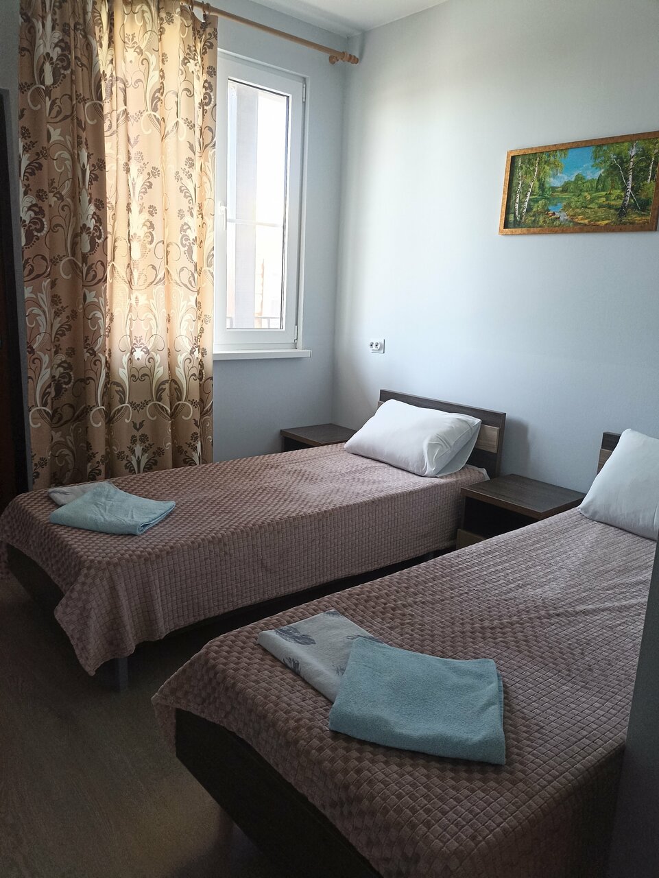 Номера чистые, уютные, емеется система охлождения, телевизор, холодильник. Хозяева гостиницы доброжелательные и отзывчевые. На территории имеется кухня со всей необходимой утрорью, так же при желании можно приготовить свою еду. До моря 5 минут ходьбы, до соленого озера 15 минут. Отличное место с отличными условиями.