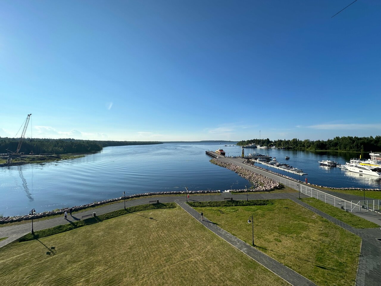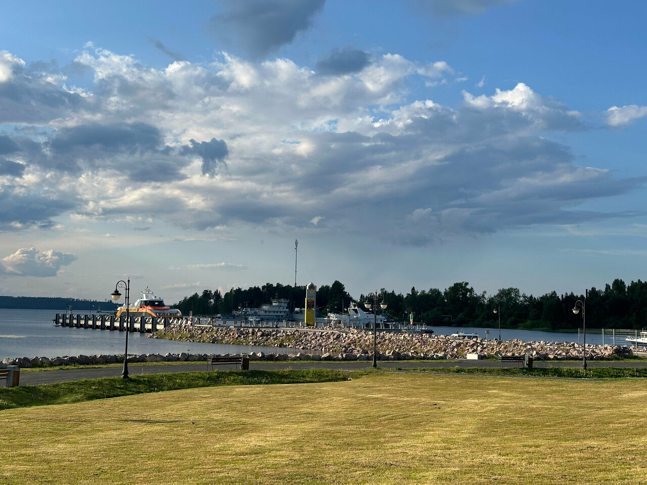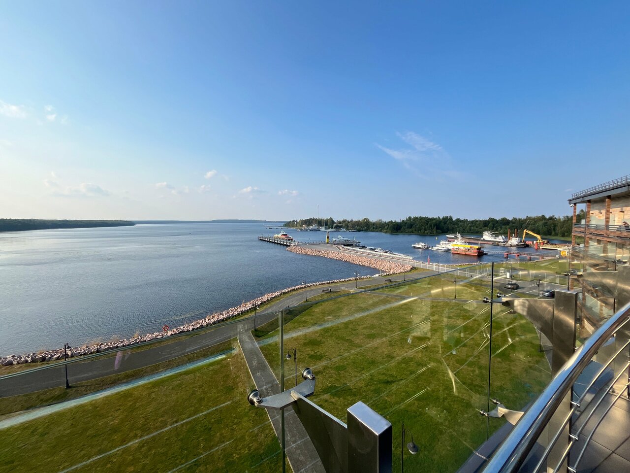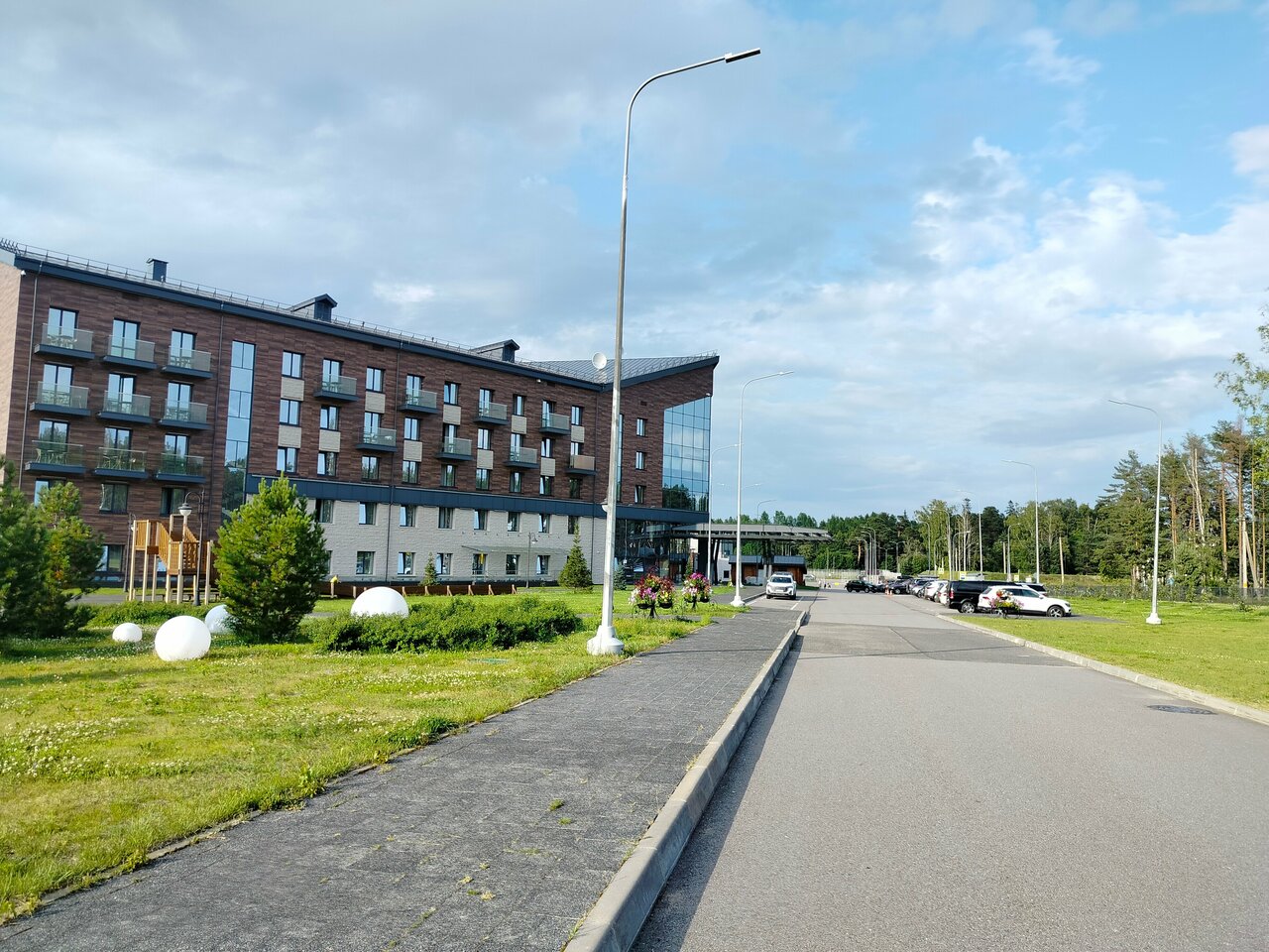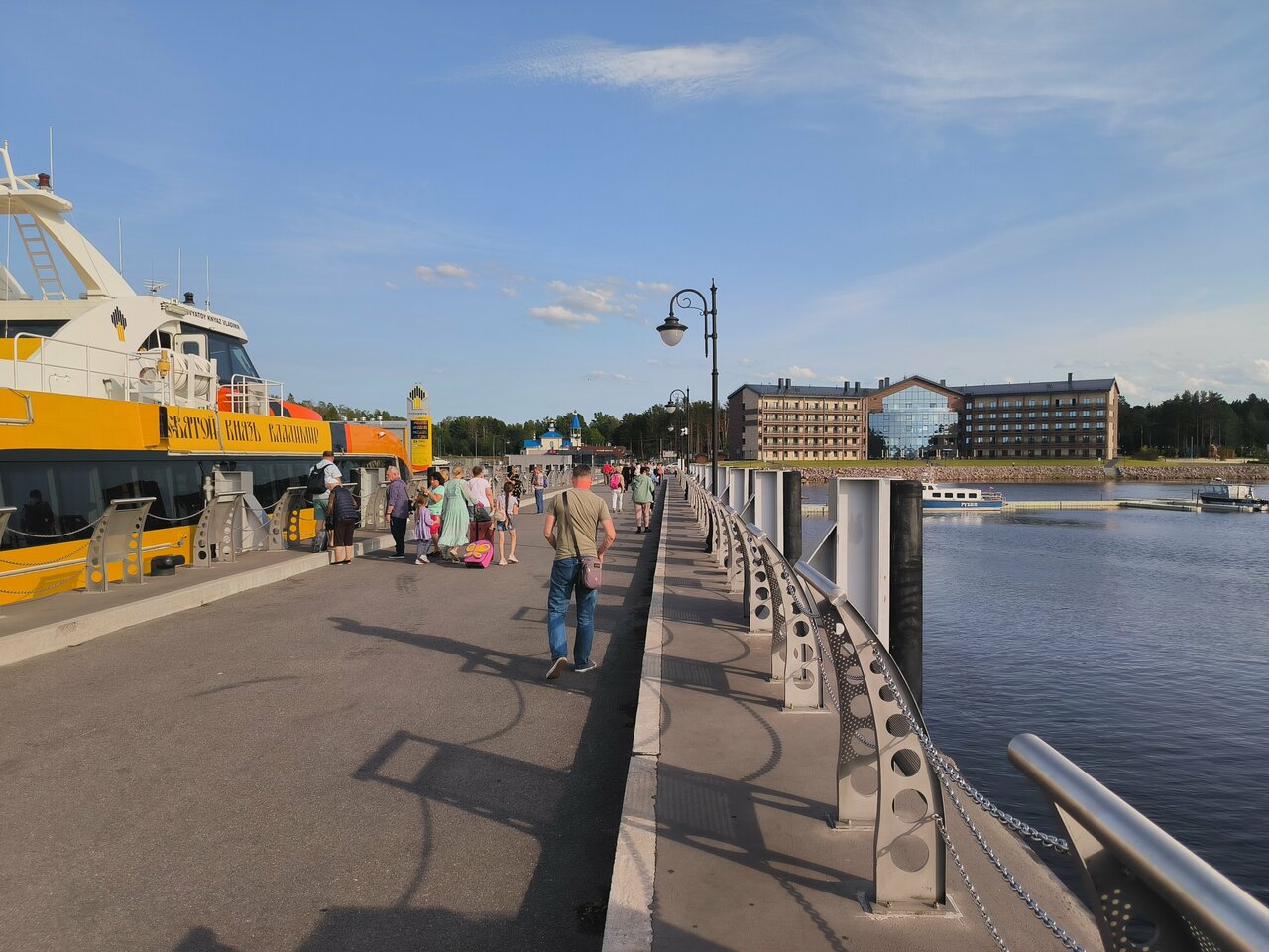 Хороший отель, тихое и спокойное место (бухта), номер чистый, все принадлежности в номере имеются, завтраки (шведский стол). Также в отеле есть детская игровая комната с воспитателем, бар с красивым видом на бухту, небольшой тренажерный зал, и по записи сауна и небольшой бассейн. Рядом с отелем располагается хорошая заправка, а также речной вокзал, откуда отправляешься на остров Коневец.(рекомендую!) Билеты на остров Коневец приобретать заранее!