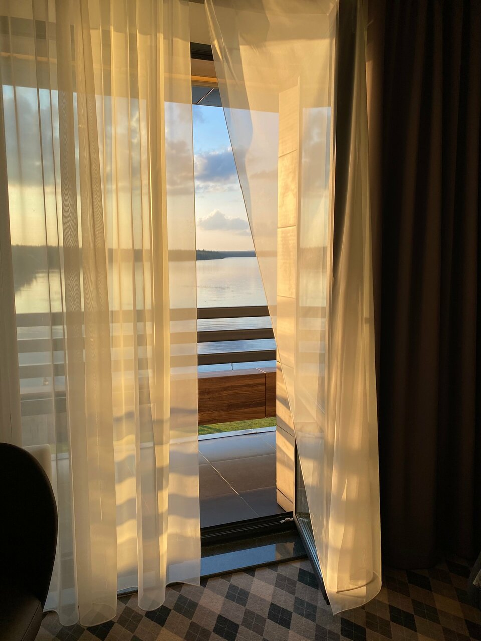 Отличный современный отель. Номера уютные. Есть с выходом на Ладогу (бухту). В отеле бесплатный бильярд для проживающих. Если большая компания, то обязательно снимайте банный комплекс.