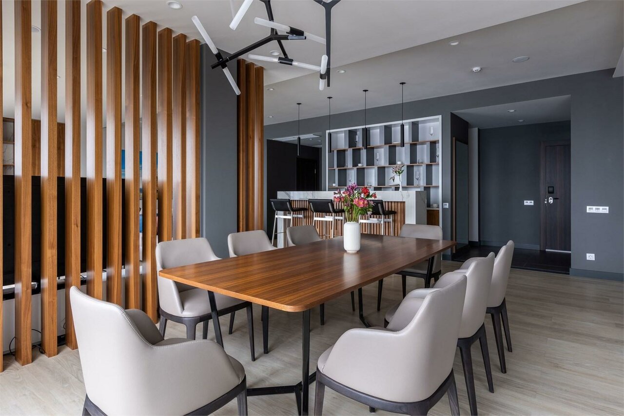 В апартаментах – стильная гостиная с панорамным видом на акваторию Ладоги, спальная комната, рабочий кабинет, кухня, столовая с барной стойкой и гардероб.Стоимость проживания варьируется в зависимости от сезона.