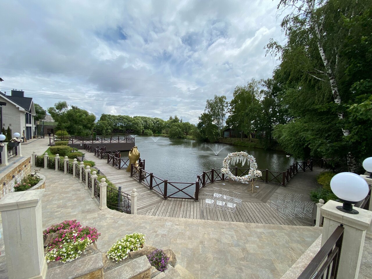 Отличное место для проведения торжественных мероприятий! Кухня хорошая, на территории свой пруд, вокруг лавочки, все очень понравилось