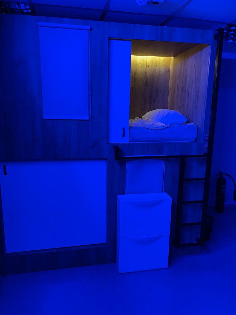 В целом хороший вариант пережить ночь в аэропорту. Брали на 5 часов. Вдвоём в одну капсулу поместиться можно. Тонковатый матрас, простынь одноразовая узкая, сбивается в комок. Одеяло без простыни, накрываться не рискнула. Плюсы; дали 2 подушки, удобные и в одноразовых наволочках. Очень хороший и чистый туалет. Шум снаружи некритичный, но возможно стоит взять беруши. Дышать легко, вентиляция. Клаустрофобии не было.