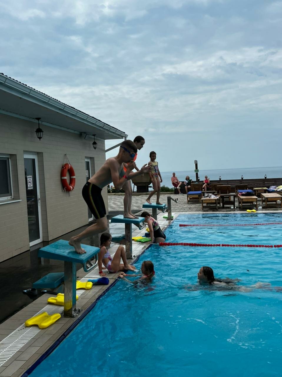 Были здесь на сборах в ноябре, остались очень довольны. Море — первая линия, к сожалению купаться холодно, но на летний период, мы для себя отметили. Ранее были в Анапе, где пляжи переполнены и идти до них с детьми 30 минут минимум. Внутренний бассейн с температурой +28 градусов был отличной альтернативой. Дети с удовольствием проводили там время. Питание было хорошим и вкусным, а шведский стол порадовал разнообразием фруктов и выпечки. Профессиональные большие залы- их здесь несколько, говорят еще есть на другой территории. Строится еще один бассейн, итого их будет три. Честно, я не видел таких баз. Из минусов можно отметить только один случай, когда не было горячей воды, но проблема была оперативно решена, что говорит о высоком уровне сервиса. В целом, мы не столкнулись с другими проблемами, а наши дети были в восторге. Соревнования, которые прошли здесь, были отлично организованы. Наши дети показали себя на все сто процентов и получили массу положительных эмоций.