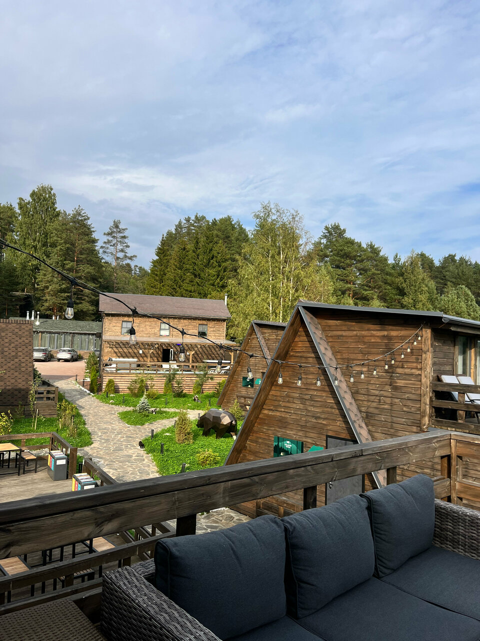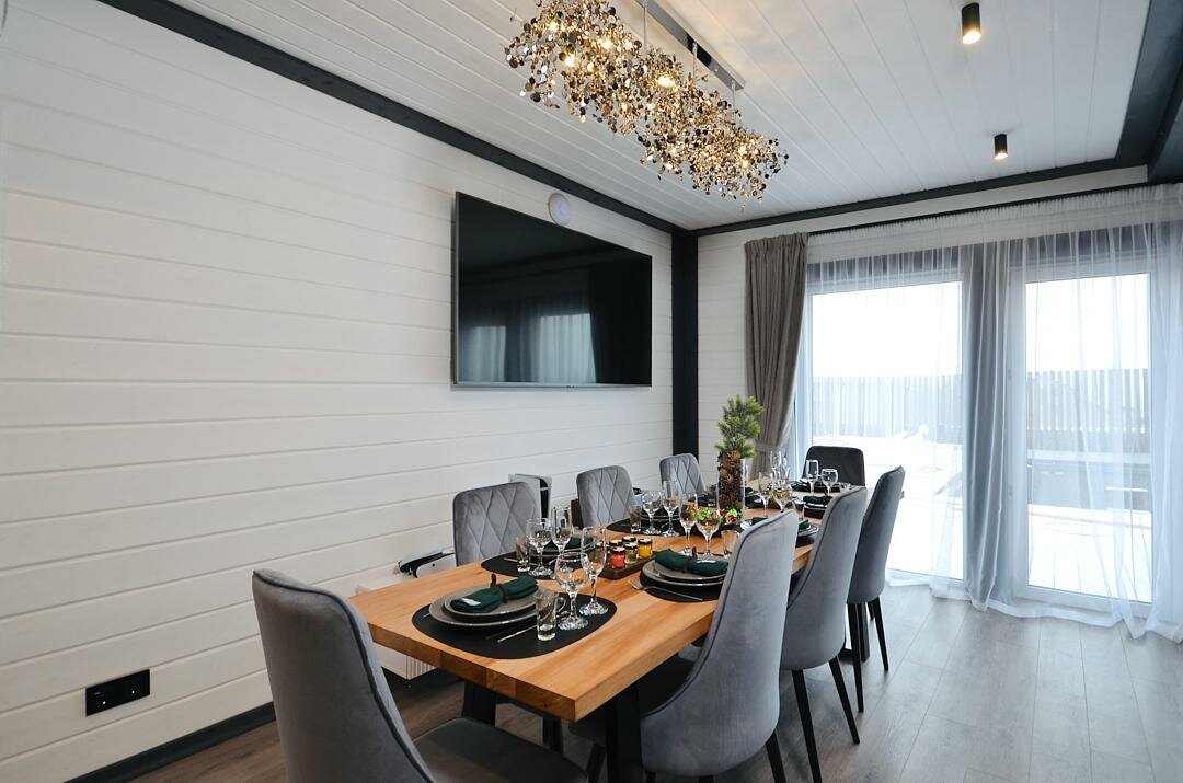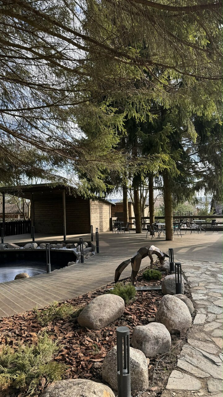 Прекрасное новое место,от города 1.5 часа,очень удобное расположение. В домике все продумано до мелочей,есть все необходимое. Рядом озеро,лес,на территории есть спа зона,бассейн,баня. В ресторане божественные завтраки И в целом разнообразное меню Обязательно вернемся еще! Спасибо большое.