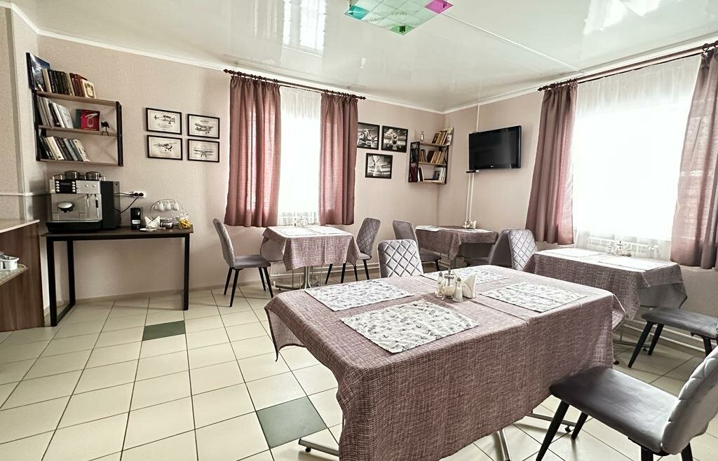 Отличное место для проживания! Удобные номера, приветливый и заботливый персонал. Все в лучшем виде. Завтраки готовят вкусные , в номерах каждый день убирают, регулярно меняют постельное белье и полотенца. В номерах есть все необходимое. В гостинице есть своя кухня и столовая со всем оборудованием, где можно самому приготовить поесть. Предусмотрена территория, с лавками и столами, а также мангальная зона :) Любителям сходить попариться, есть сауна с бассейном. Вся гостиница оформлена в авиационном стиле, очень атмосферно для любителей авиации и не только ☺️ Рекомендую