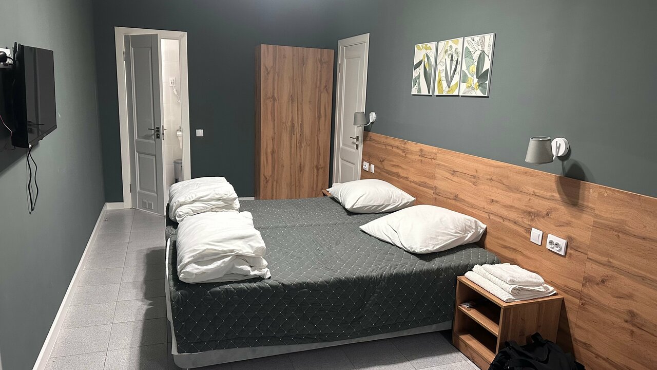 Отличная гостиница, сегодня ночью остановились (в дорогу ночь переночевать) дружелюбно и быстро разместили….расположение отличное, огорожена и от дороги подальше…. обалденные кровати и раскладушка с удобными матрасами, постельное белоснежное, чисто уютно, есть столовые приборы, всё как на фото 5+
