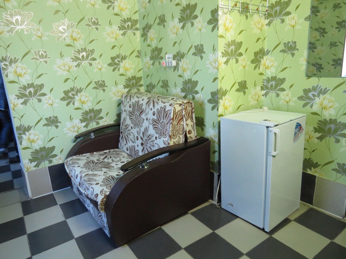 Чисто, дёшево, но дизайн из 90х. Кровати нормальные, холодильник и кондиционер работали. У шифонера 1 дверца. Ехали с моря, остановились на одну ночь.