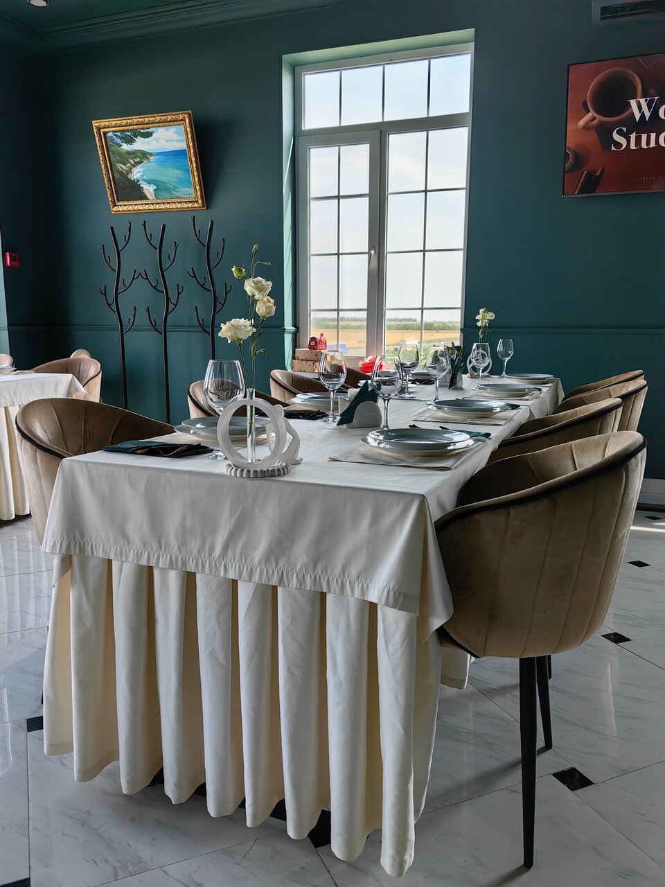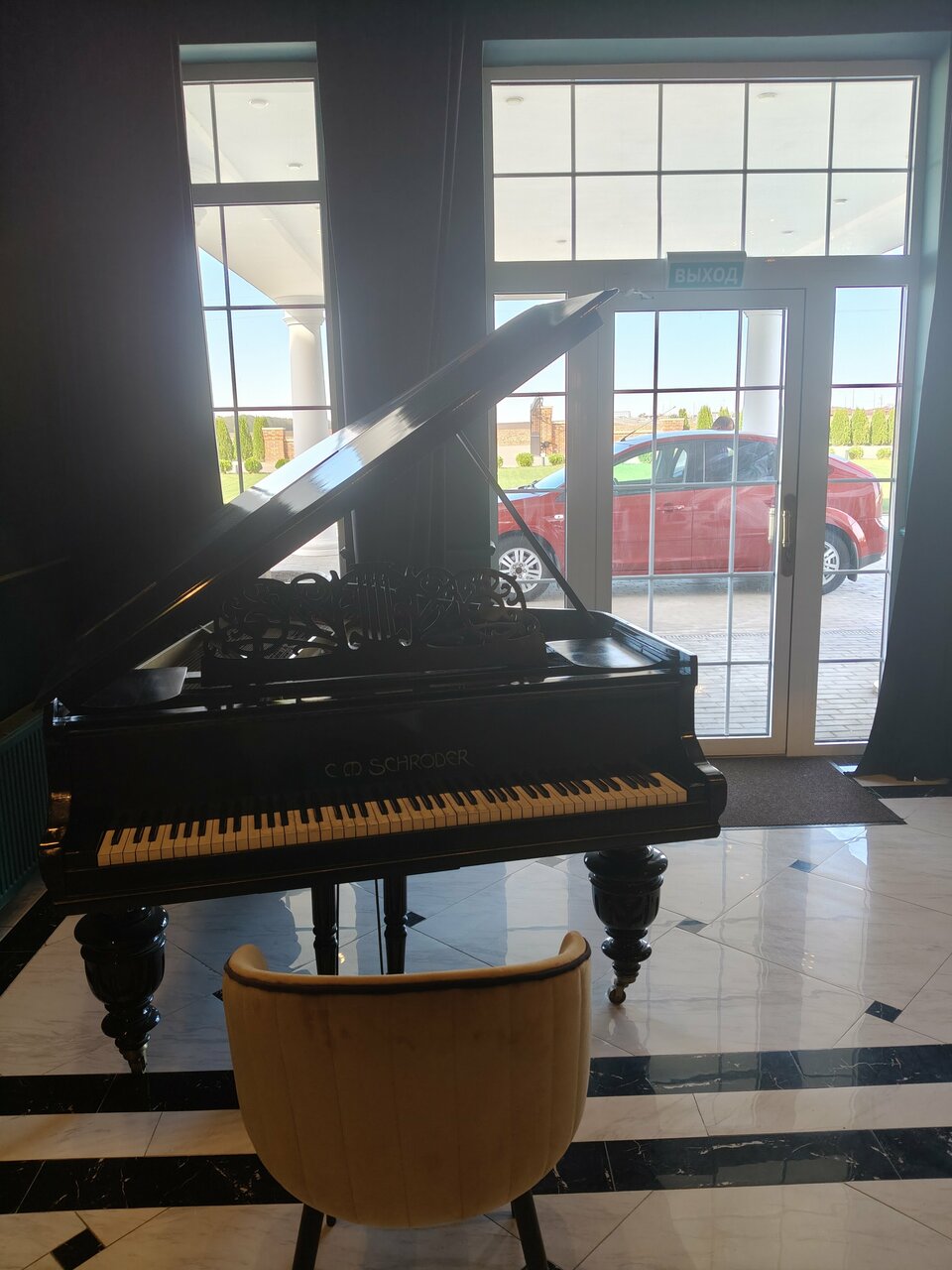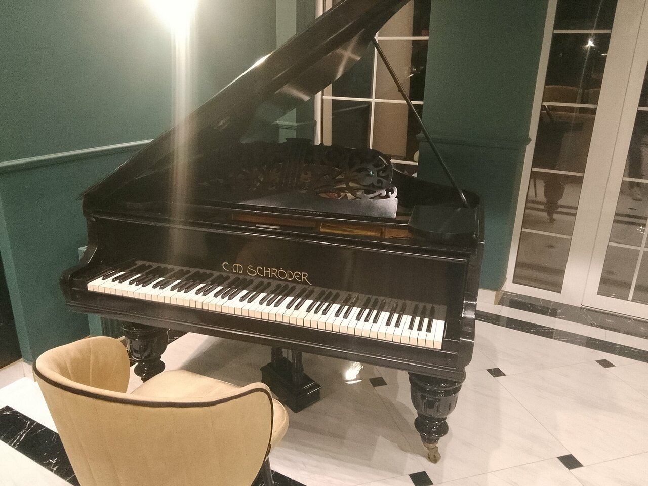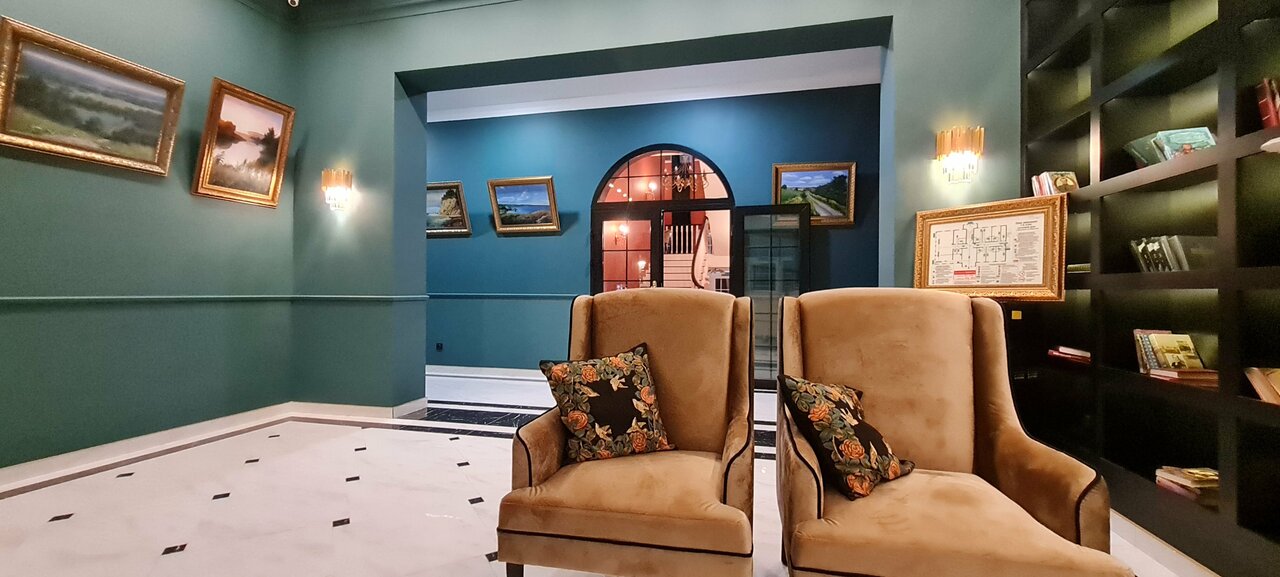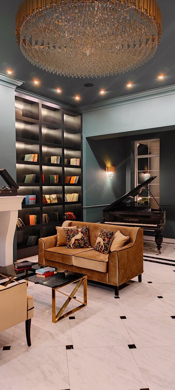 - Атмосферное оформление (рояль, библиотека).