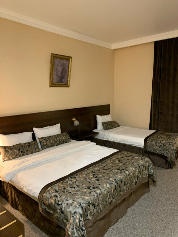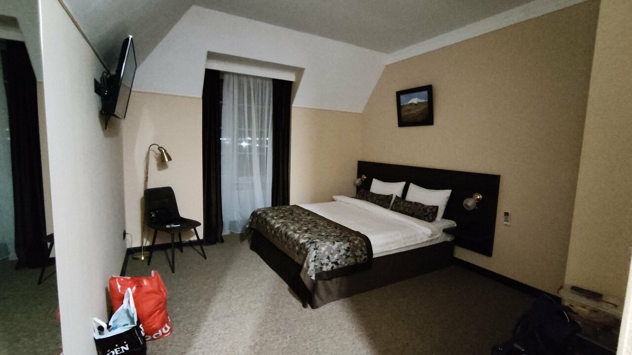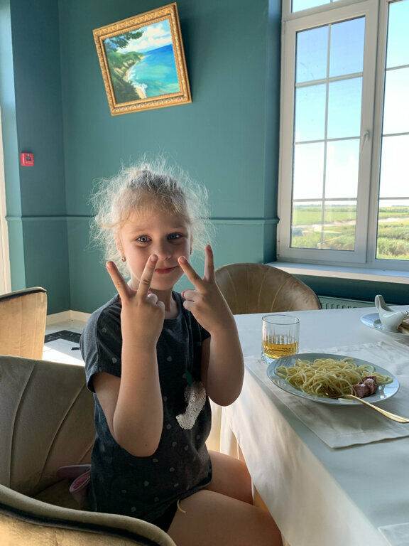 2 сентября нашли эту гостиницу, бронировали за три часа подлётного времени, поэтому двухместный номер нам уже не достался. Основной вопрос был: можно ли с собакой. У нас пудель мини, 3,5 кг. При наличии переноски нам одобрили заезд с хвостатым) Остановились в трехместном номере. Он не такой упакованный как двухместный: нет чайных принадлежностей, стаканов, тапочек, халатов и гигиенических наборов. В ванной комнате есть комплекты полотенец, на каждого гостя гель и шампунь с логотипом, фен. Холодильника нет. В нашем номере двуспальная кровать и кровать на одного. Все уютно и красиво. Вопрос с чаем решили на ресепшене: принесли в номер. Так же можно заказать ужин в номер. Ресторан с семи вечера. Готовят действительно вкусно. Завтрака не дождались, уехали ночью к морю. Рекомендую это место, есть все условия в комфорте выспаться с дороги, поесть и погулять по поселку)