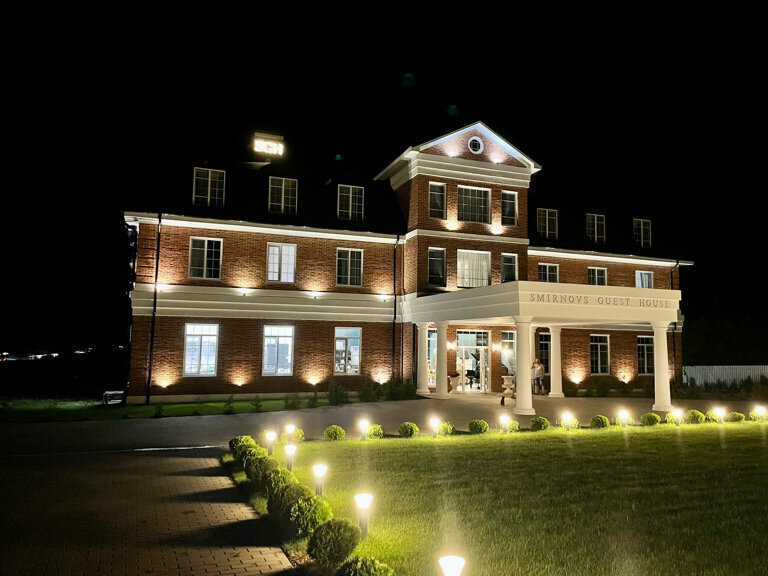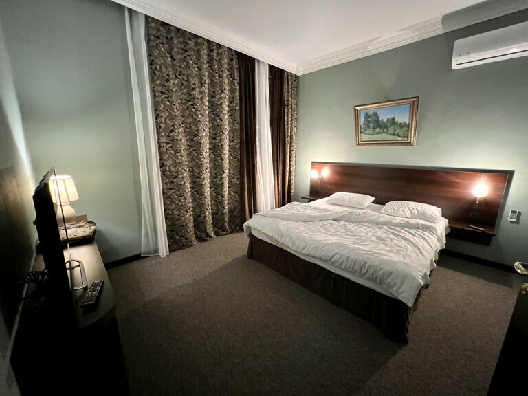 Остановились переночевать , так как ехали к морю из Москвы. Гостинцу нашли прямо в интернете , ночью. Позвонили , нас все устроило. За номер стандарт на 2-их, 3-их взрослых заплатили 4300/ночь. Очень чистый , приятный номер, странно, что отель не имеет звезд. Не понравилось, что в 23 часа ресторан отеля закрыт, если вы голодны-поесть негде .Интерьер очень хорош ! В лобби рояль и библиотека, все оформлено со вкусом. Рекомендую.