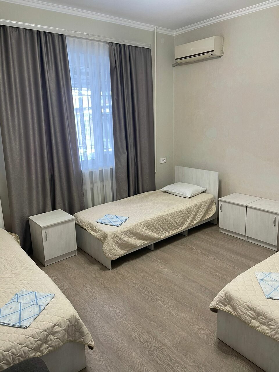 Трехкомнатный четырехместный номер с удобствами: телевизором, кондиционером, душем, холодильником, санузлом и Wi-Fi.