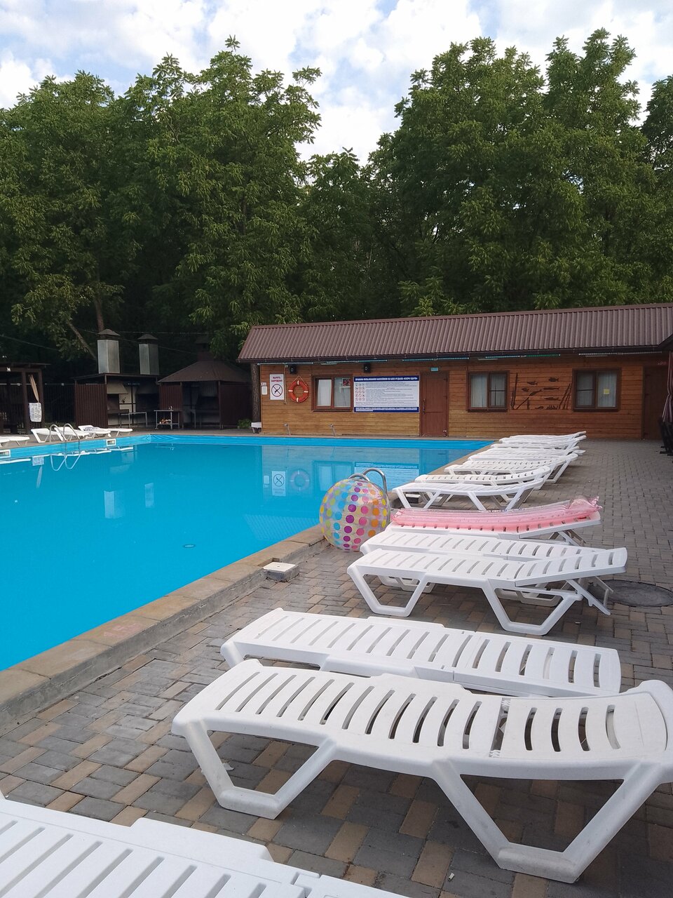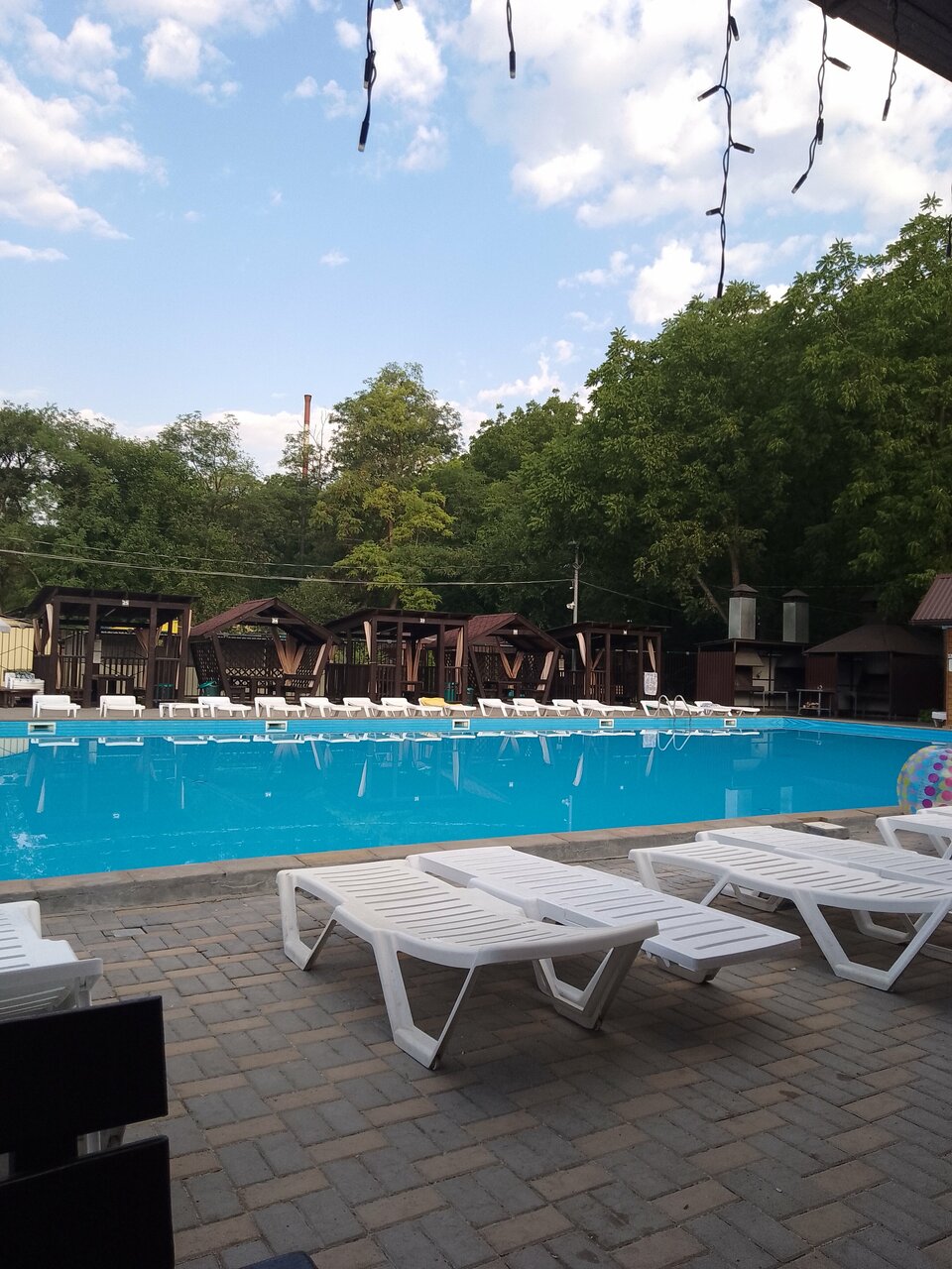 Беседки у бассейна очень дорогие, написано со своими колонками нельзя, а музыка орет чуть ли не из каждого домика.