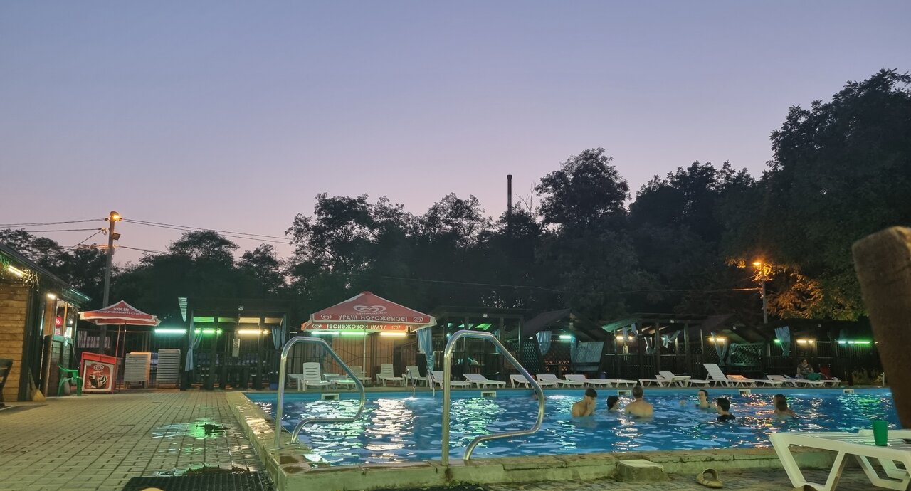 Много лет пользуюсь услугами этой базы. Беседки хорошие, вместительные, хорошие столы и стулья, есть свет и розетки, даже есть любимая беседка- 12! К самим бассейнам претензий нет, но неоправданно завышенная цена на подогреваемый! Считаю что посетителям беседок, а тем более домиков должна быть как минимум скидка или какое то количество бесплатных браслетов, сейчас это всё довольно накладно помимо всего прочего браслет -800. Домики — ничего примечательного чисто но набор минимальный, подойдёт, только если у вас нет цели сидеть в номере. Сама база оформлена минимально, что лично для меня является плюсом есть вариант побыть на природе а не надоедливых асфальтных дорожках, хотя основное заосфальтировано, так что для меня это отличная база, праздную все летние и весенние мероприятия только тут