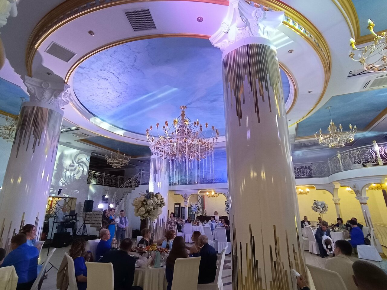 Шикарный банкетный зал. Очень красиво. Были на свадьбе все очень вкусно все было приготовлен. Меню просто нереально, официанты очень отзывчивые и шикарно смотрели за столами.