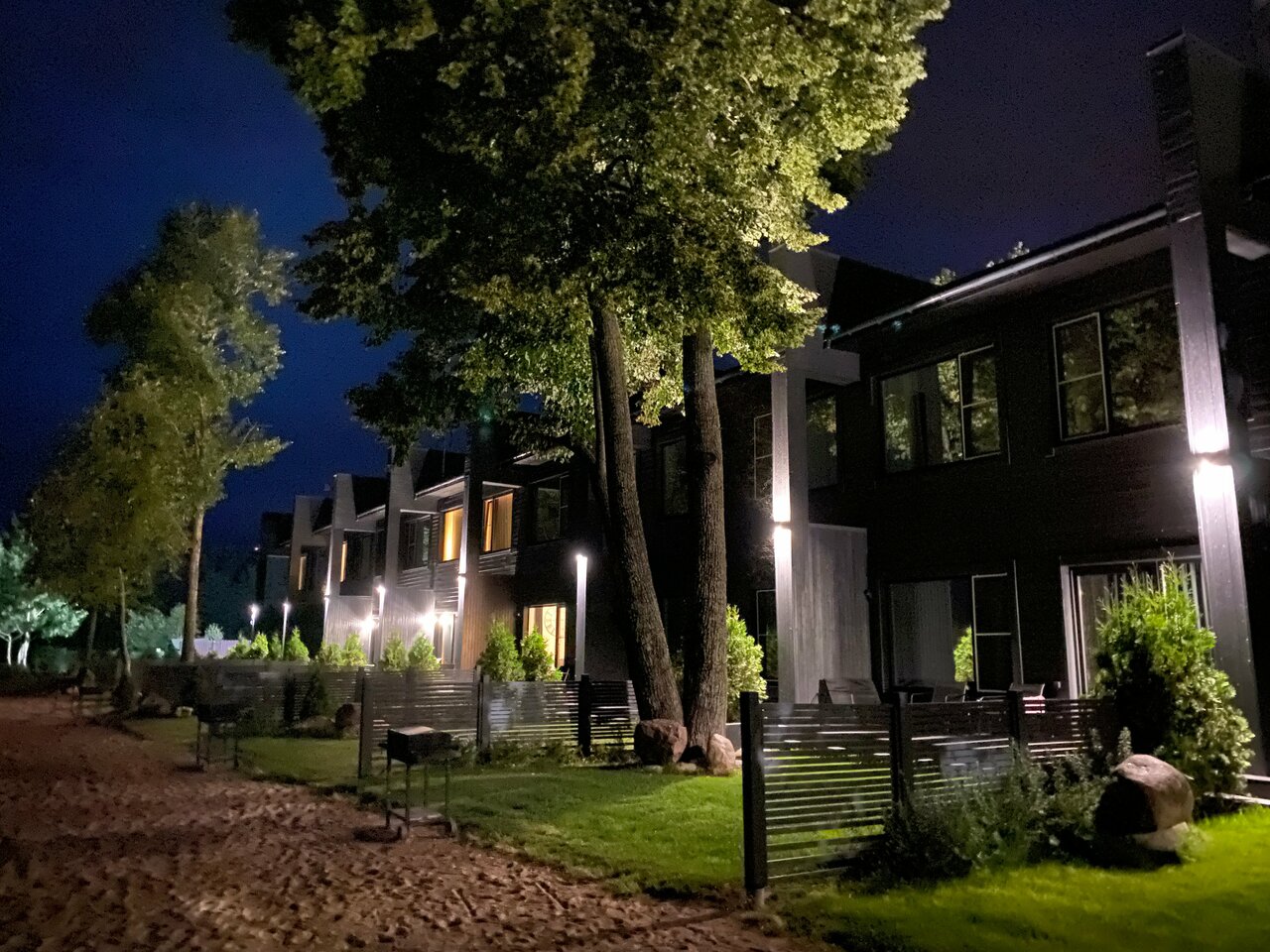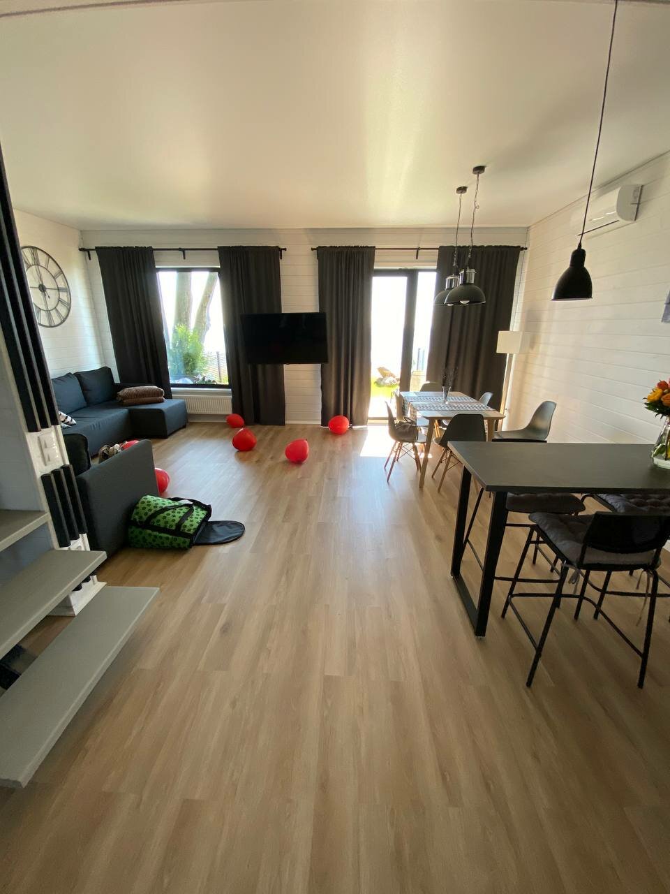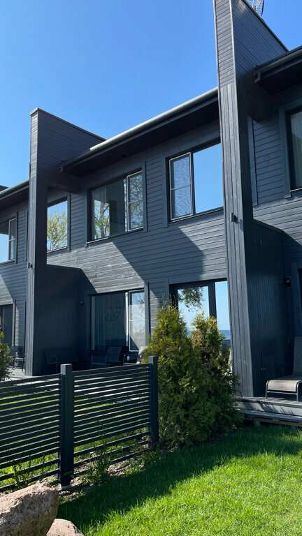 Хорошее место на берегу залива. Уютные таунхаусы с полным набором техники для удобства приготовления. Гриль на участке с террасой. Чисто, стильно, прекрасный вид. Парковка на территории так же есть детская площадка с батутом.