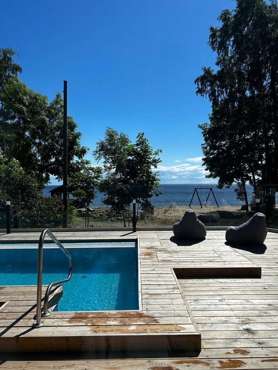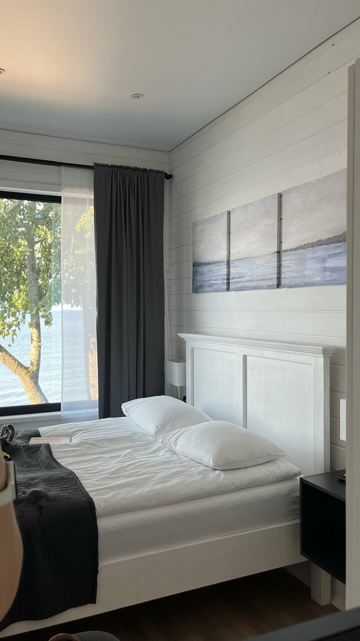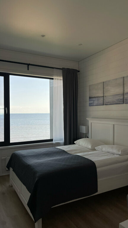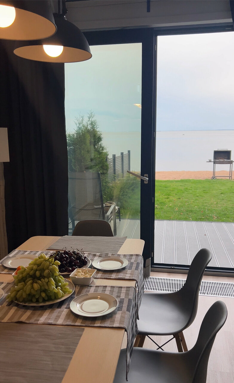 Удобства: ✔ Собственный песчаный пляж, подогреваемый бассейн, баня, хаммам, джакузи, сауна, spa ✔ Детские площадки, кроватки (бесплатно для детей до 10 лет), прокат велосипедов и снегоходов ✔ Номера с кухнями, посудой, микроволновкой, чайником, террасами ✔ Бесплатная парковка, Wi-Fi, уборка, проживание с животными