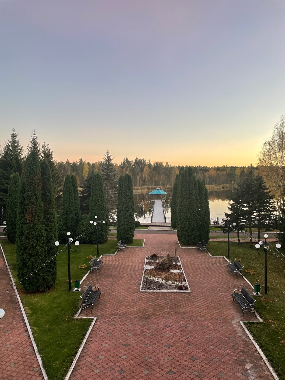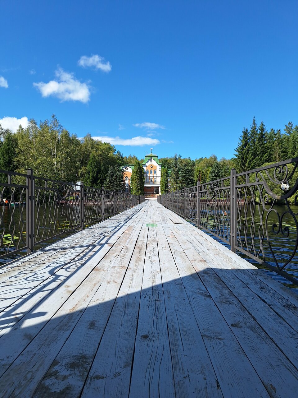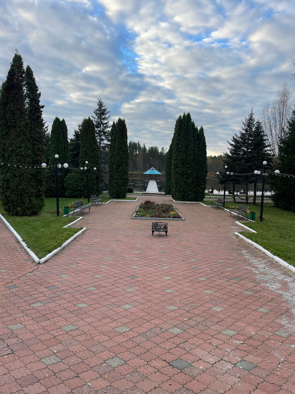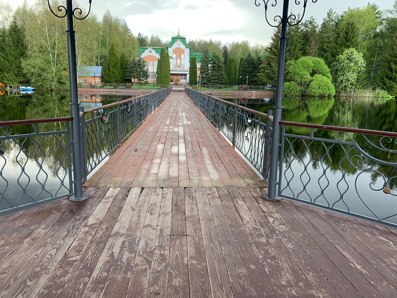 Отличное место! Часто проводят свадьбы, очень фотогиничная беседка по середине озера. Мы брали велики на прокат (500 руб сутки) и объедили практически весь парк, получилось 33 км) в номере комфортно, матрасы мягкие, но вполне комфортные. Завтрак сытный! Можно заказать ланч-бокс, если ранний выезд