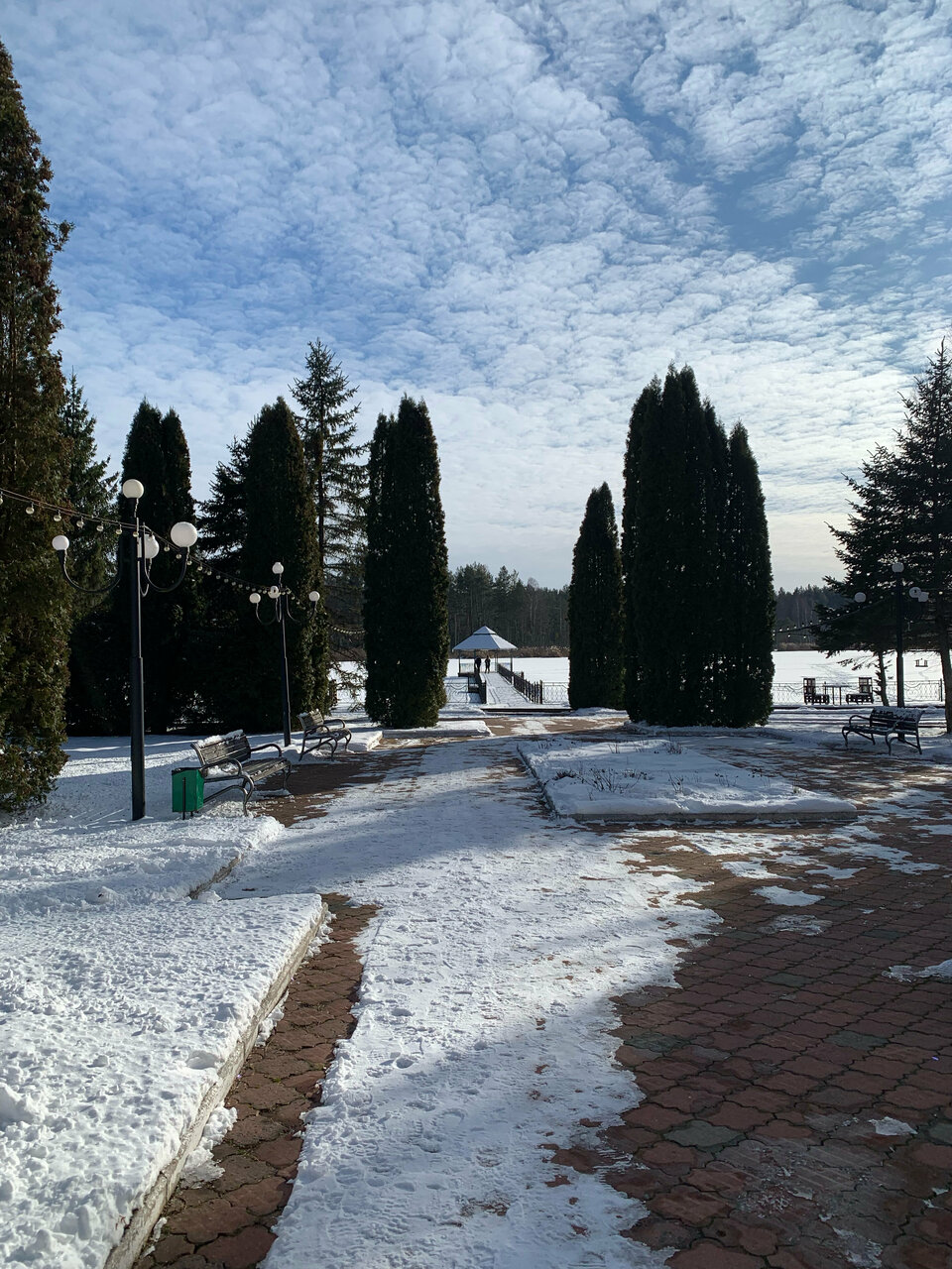 Очень красивое, уютное место для отдыха семьей или друзьями. Потрясающие виды и воздух! Приезжали из Москвы и, конечно, не хватило выходных. Были на источниках, в национальном парке у зубров. Везде одна красота и благодать ! А какой рресторан при отеле , ммм еда наивкуснейшая, салаты огонь и завтраки Летом теперь хочется приехать, посмотреть на озеро и зеленый лес ❤️