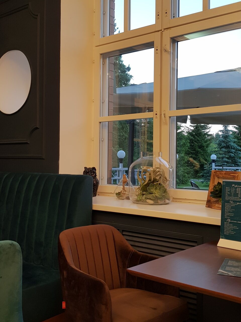 Очень атмосферно, уютно, чисто, стилистика помещений в довольно тёплых тонах очень согревает, вкусная еда, так же рекомендую чай с имбирём))) в дали от города, тихо спокойно))) очень советую посетить!!!!