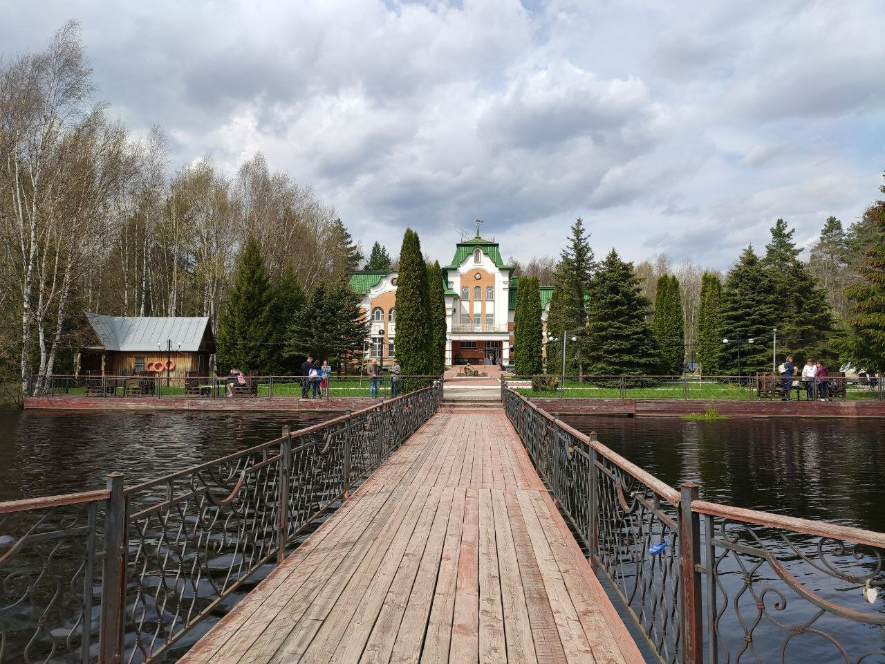 Очень понравилось. Хороший ресторан. Комфортные номера. На берегу озера, которое немного запущено. Но рядом другое озеро с пляжем. Недалеко родник с купальней и часовенкой. Недалеко зверинец с животными на вольном выпасе, но медведь в вольере