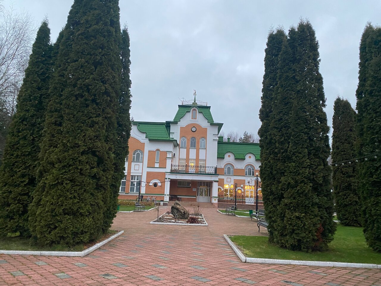 Из Орла до бутик отеля можно добраться по одной из двух дорог. Первая — двухполосная, безопасная, дальше по километражу и соответсвенно дольше по времени. Вторая — 30% хорошая региональная дорога, 70% — это однополосная извилистая дорога по лесу, где рекомендованная скорость 30км/ч и это вполне обосновано, т.к. дальше ближайшего куста не видно ничего, встречные машины несутся на встречу и седых волос на голове становится больше. территория отеля большая — весь лес к вашим услугам.Отель из 90-х и требует ремонта и ухоженности