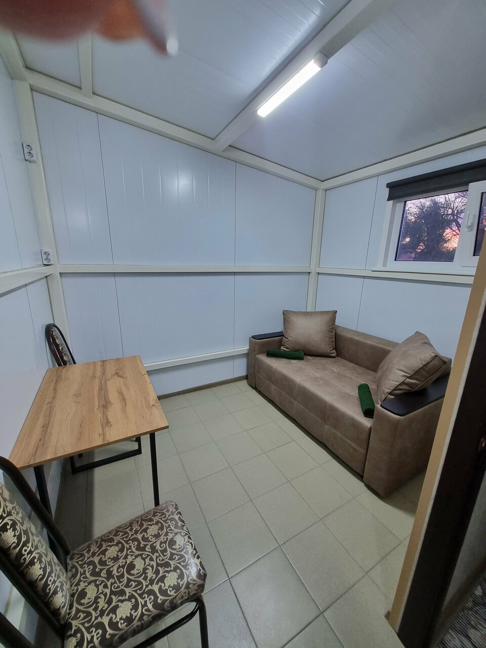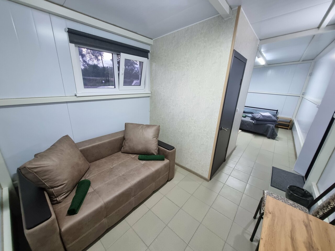 Комната со всеми удобствами светлая красивая есть телевизор, кондиционер один минус очень слышно машины так как рядом трасса, и голоса людей.