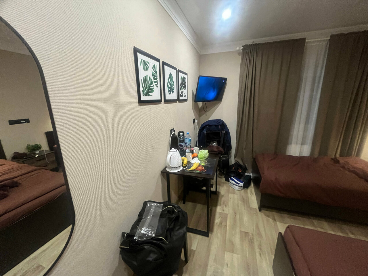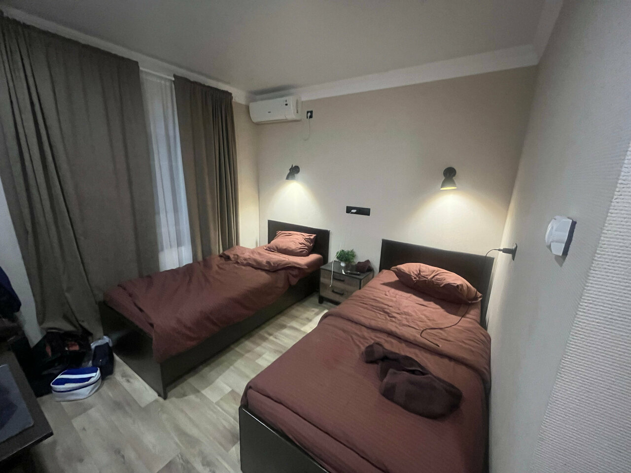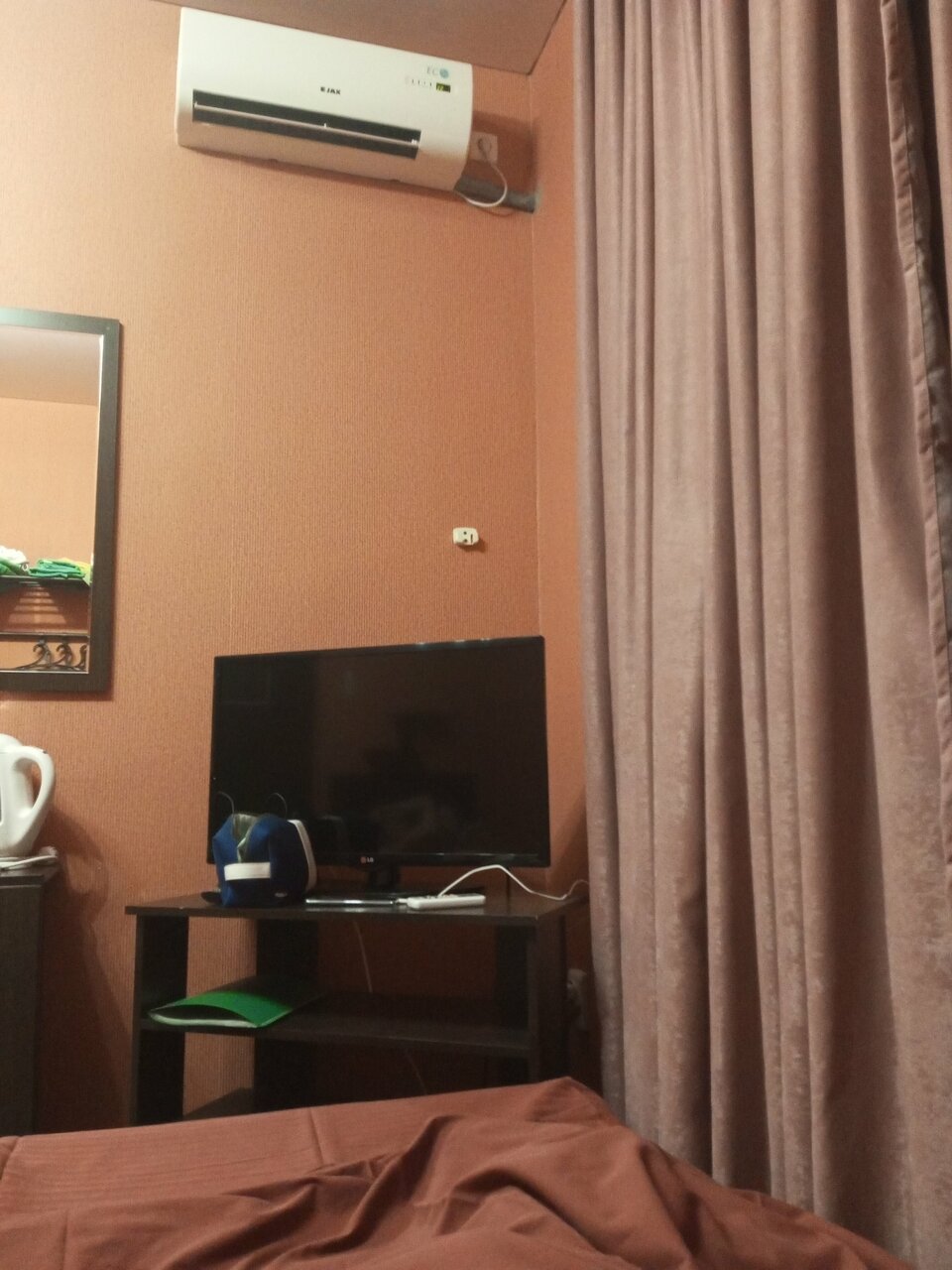 Останавливались только на ночь. Не смотря на быстро образовавшуюся очередь из желающих осмотреть свободные номера, администратор довольно быстро со всеми справилась. ТВ не пользовались, т.к. розетки нужны были для зарядников, а вот кондиционер порадовал.