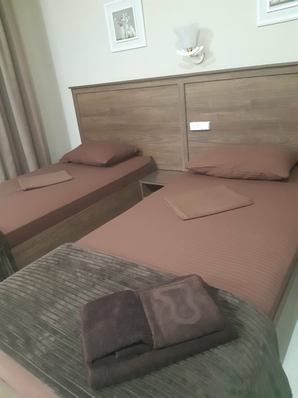 Отель полностью оправдывает свои 4 звезды, хотя можно поставить и все 5! Заезжали с семьёй поздно вечером, 4 человека, 2 взрослых и 2 ребёнка. Номер получился 2600 с удобствами на этаже. Номер восхитительный, все чисто, красиво, ухоженно. Туалет с душевыми блестит от чистоты, все на высшем уровне как дома. Персонал вежливый, учтивый. Так же есть холодильники, и микроволновки, все в отличном состоянии. В целом отель замечательный, если отправимся ещё раз отдыхать, будем обязательно останавливаться тут. Спасибо большое за прекрасное обслуживание!