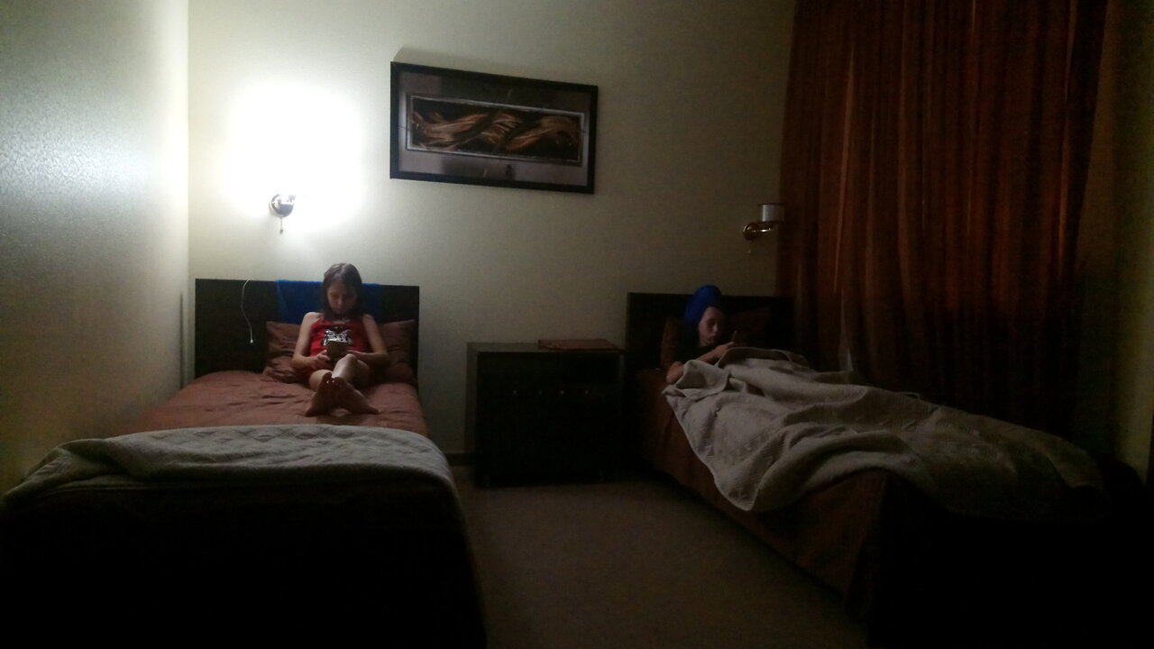 Хороший отель, нашли на скорую руку, чтобы остановиться на несколько часов — отдохнуть от дороги. Просторные, чистые номера! Телевизор, кондиционер, чайник, микроволновка, полотенца — в общем и целом всё отлично! Рекомендую