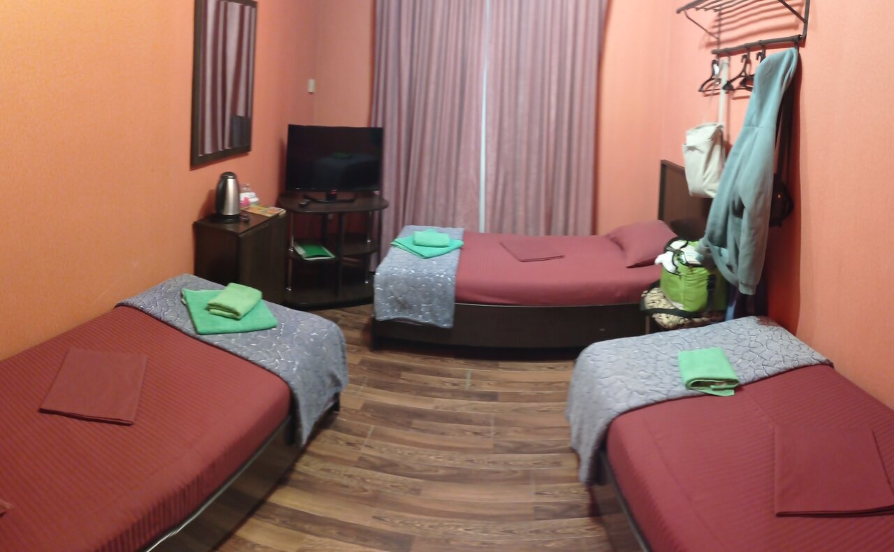 Трёхместный, однокомнатный номер. Одноэтажное здание. Отдельный вход с улицы в каждый номер. Стоимость указана минимальная.