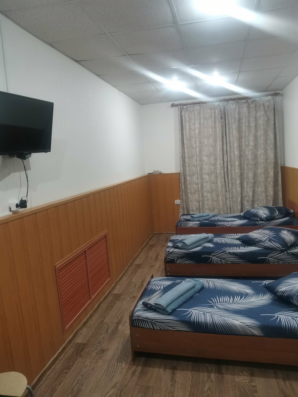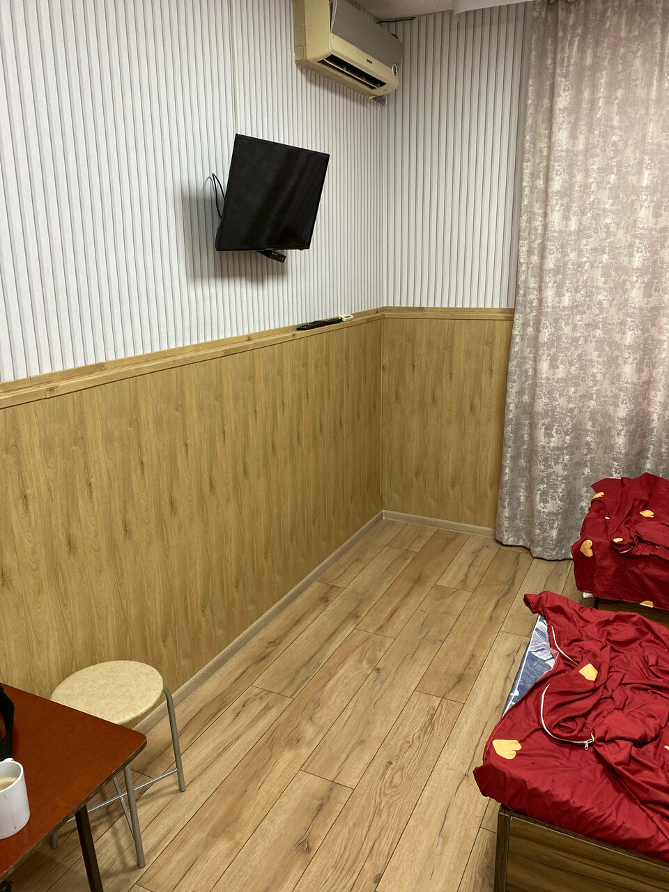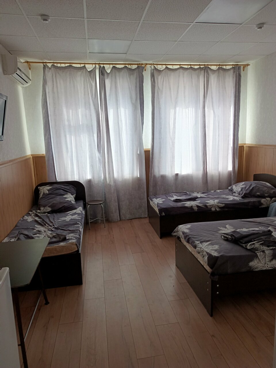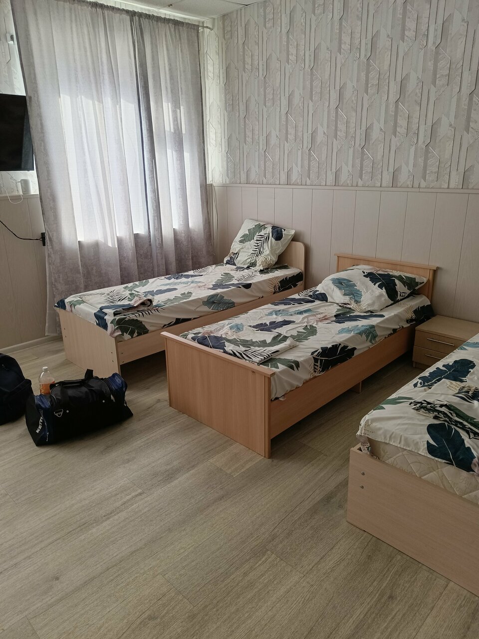 Останавливались в этом отеле 15.06.2024 г. двое взрослых и ребёнок 7 лет)) Ехали проездом с Красноярска в Новороссийск)) Отель после хорошего ремонта, всё чистенькое, новенькое, ароматное, в номере и по гостинице пахнет аромадифузорами, на входе нас встретили приятные молодые ребята, парень и девушка, очень добрые приветливые и гостеприимные)) Номер просторный, три односпальные кровати, постельное белье, полотенце, душ и туалет в номере, кондиционер, телевизор, и даже холодильник Отдельно по коридору кухня. Это лучшее место из тех где нам пришлось заночевать преодолевая длинную дорогу в 5200 км., не жалко ни рубля, заплаченных за номер!!! Желаю этому отелю только самых ‘положительных’ посетителей, которые будут уважать и ценить труд вложенный в каждый номер!!!