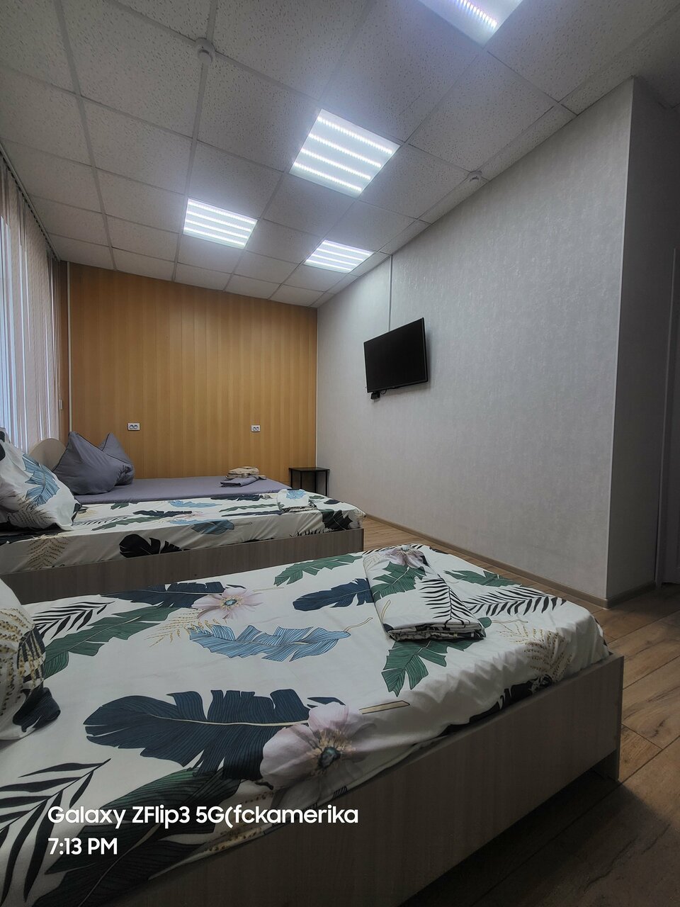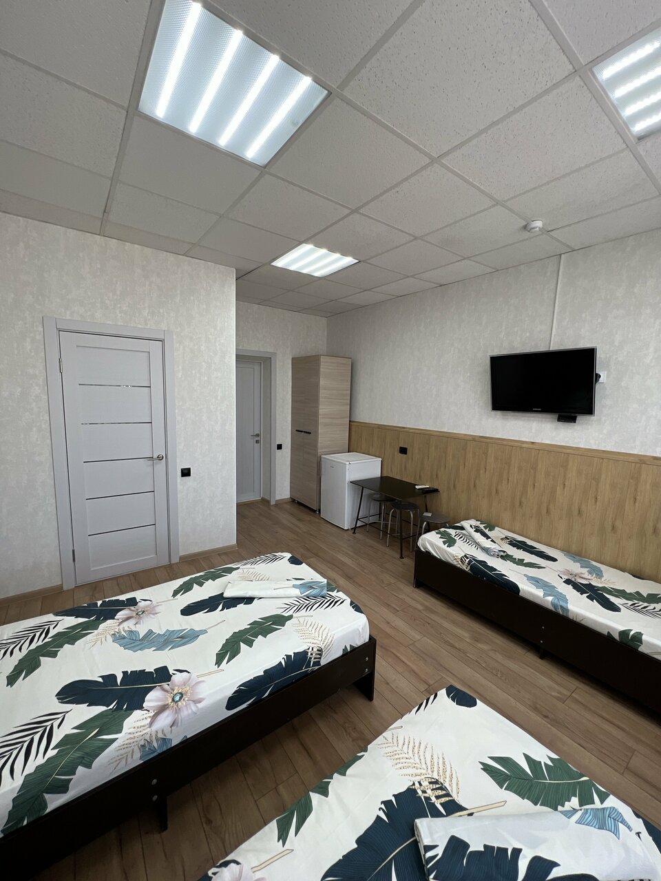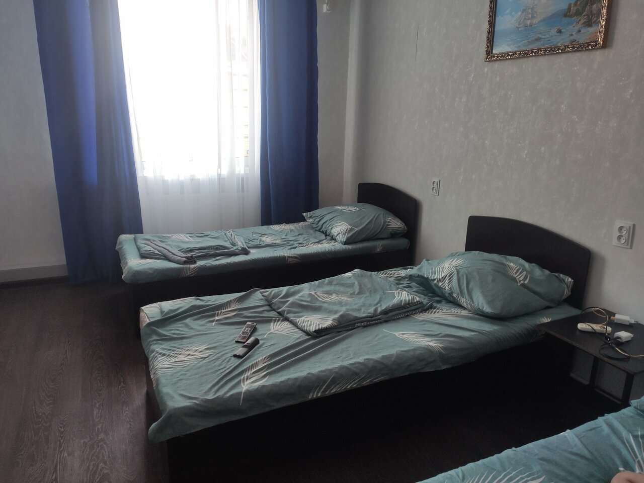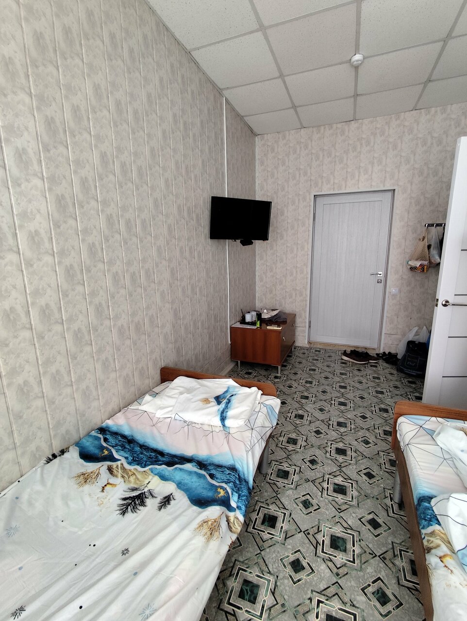 Останавливались в этом отеле 15.06.2024 г. двое взрослых и ребёнок 7 лет)) Ехали проездом с Красноярска в Новороссийск)) Отель после хорошего ремонта, всё чистенькое, новенькое, ароматное, в номере и по гостинице пахнет аромадифузорами, на входе нас встретили приятные молодые ребята, парень и девушка, очень добрые приветливые и гостеприимные)) Номер просторный, три односпальные кровати, постельное белье, полотенце, душ и туалет в номере, кондиционер, телевизор, и даже холодильник Отдельно по коридору кухня. Это лучшее место из тех где нам пришлось заночевать преодолевая длинную дорогу в 5200 км., не жалко ни рубля, заплаченных за номер!!! Желаю этому отелю только самых ‘положительных’ посетителей, которые будут уважать и ценить труд вложенный в каждый номер!!!