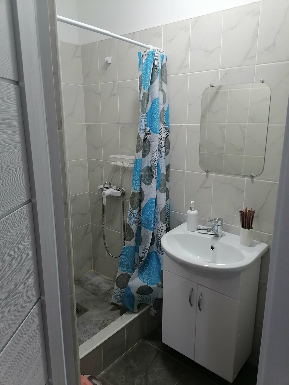 Останавливались в июле. Два взрослых, два ребенка. Комната и туалет чистые, есть шампуни, гели, зубная паста и щётки одноразовые, тапочки. Все очень понравилось, на кухне можно все приготовить и посидеть, поесть. Рекомендую. Цена адекватная