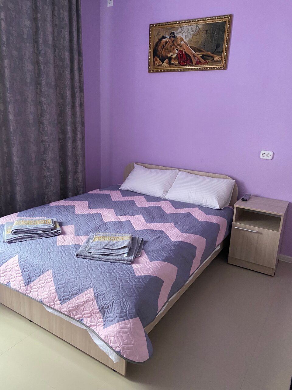 Приятная придорожная гостиница.Ехали с семьёй с моря,очень устали и решили остановиться здесь. Приятная женщина администратор встретила очень тепло,номер VIP нас 2 взрослых и 3 детей поместились.В номере кондиционер,холодильник,посуда,шыфанер,стол со стульями,эл.чайник,кровать 2-х спалка и раскладной диван,туалет и душ в номере.Бельё чистое,в номере убрано чисто,полотенце индивидуально для каждого гостя т.е. 5 банных и 5 маленьких.Единственное,что хотелось бы ещё видеть в ванной шампунь,кондиционер и твёрдое мыло для одноразового использования.