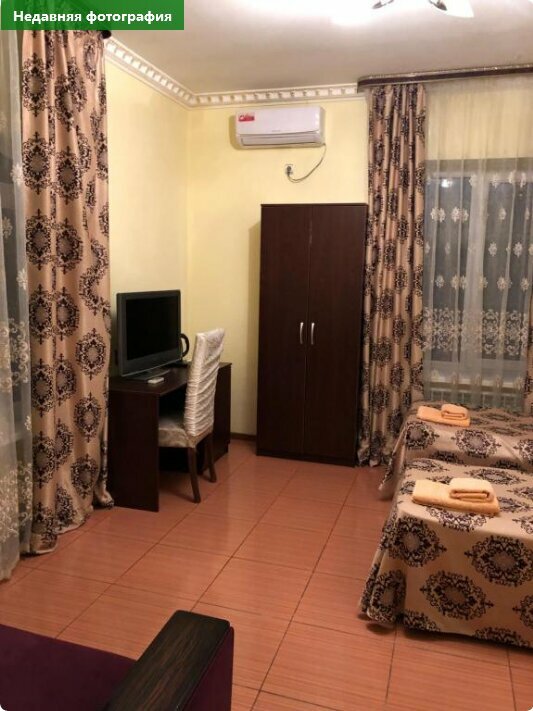 За четыре поездки на курорты Краснодарского края — только самый положительный отзыв этой гостинице. Халаты, гели-шампуни- мыло,изубные паста/щётка, фен, разовые тапочки, чайник и двухместный номер. Да, ресепшн был пуст. Позвонили по номеру на стойке. Девушки сбежались. Обслужили и, так же быстро растворились в вечернем мареве краснодарского вечера… За французскую бульдожку не взяли ни копейки доплаты. И всё это за демократичные 1,5тр. Не знаю, что там происходило с авторами других отзывов — нам всё понравилось. (Только пояса от халатов почему-то отсутствовали))…
