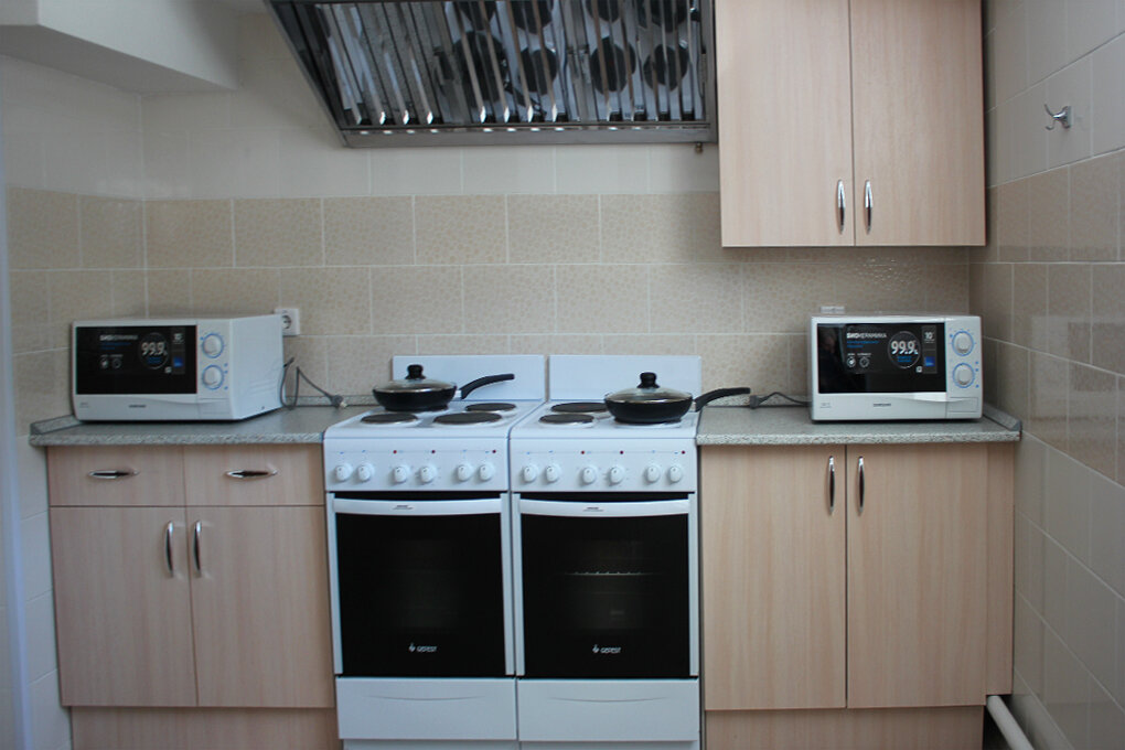 - Кухня с посудой и приборами.