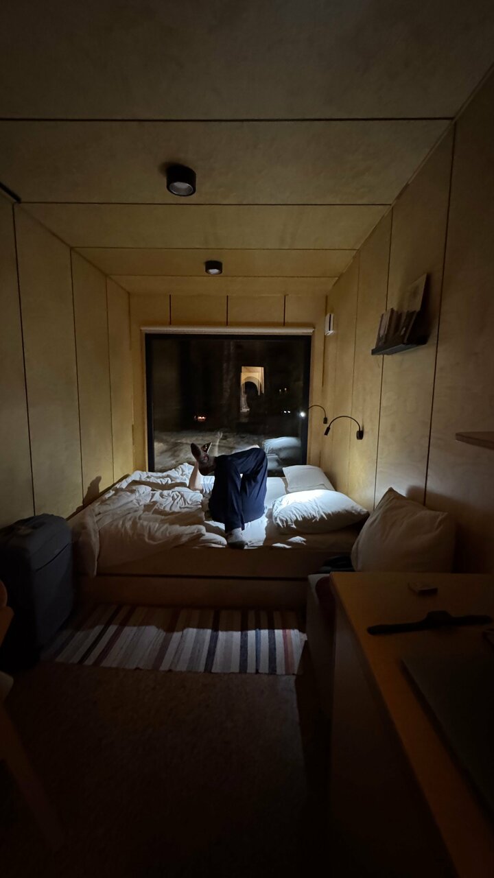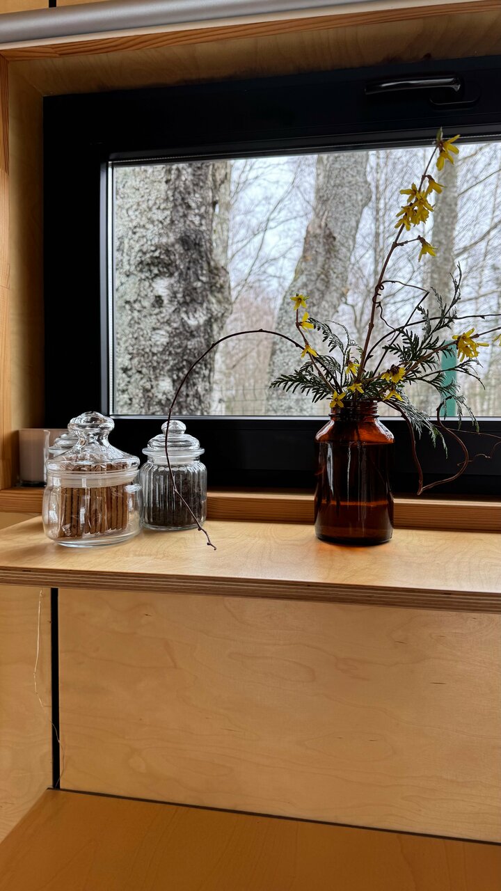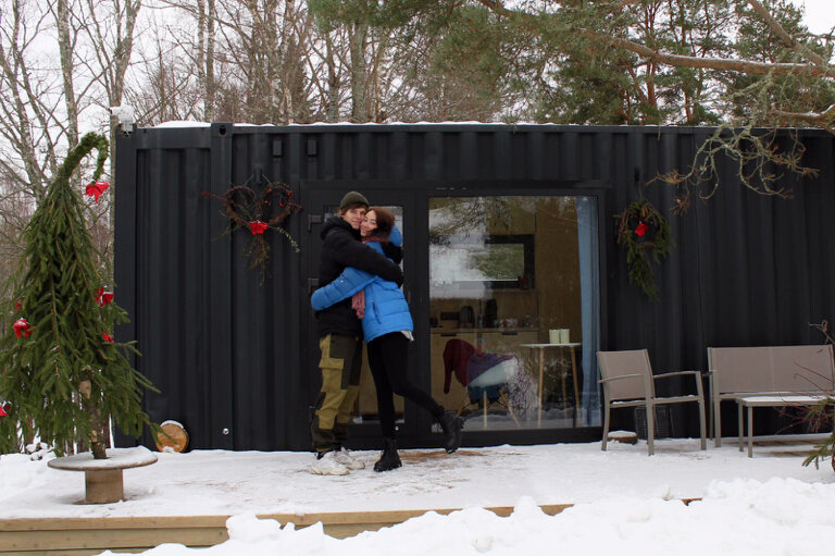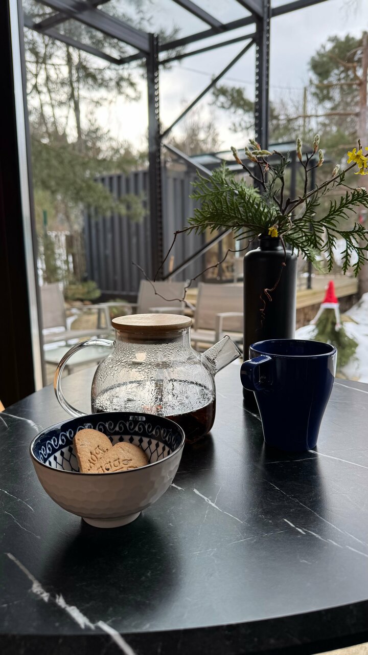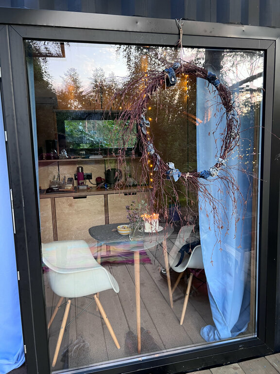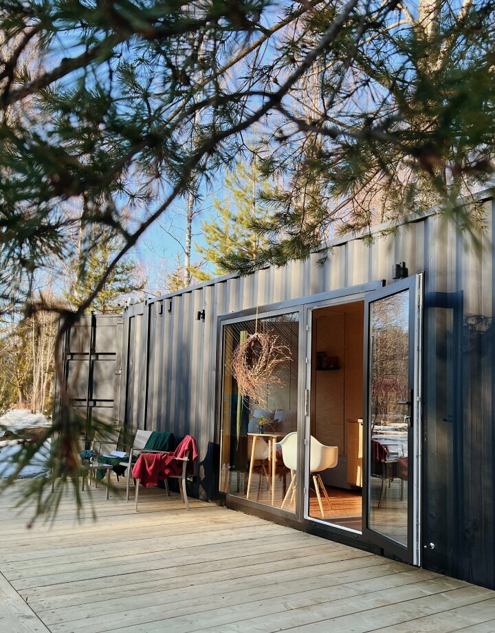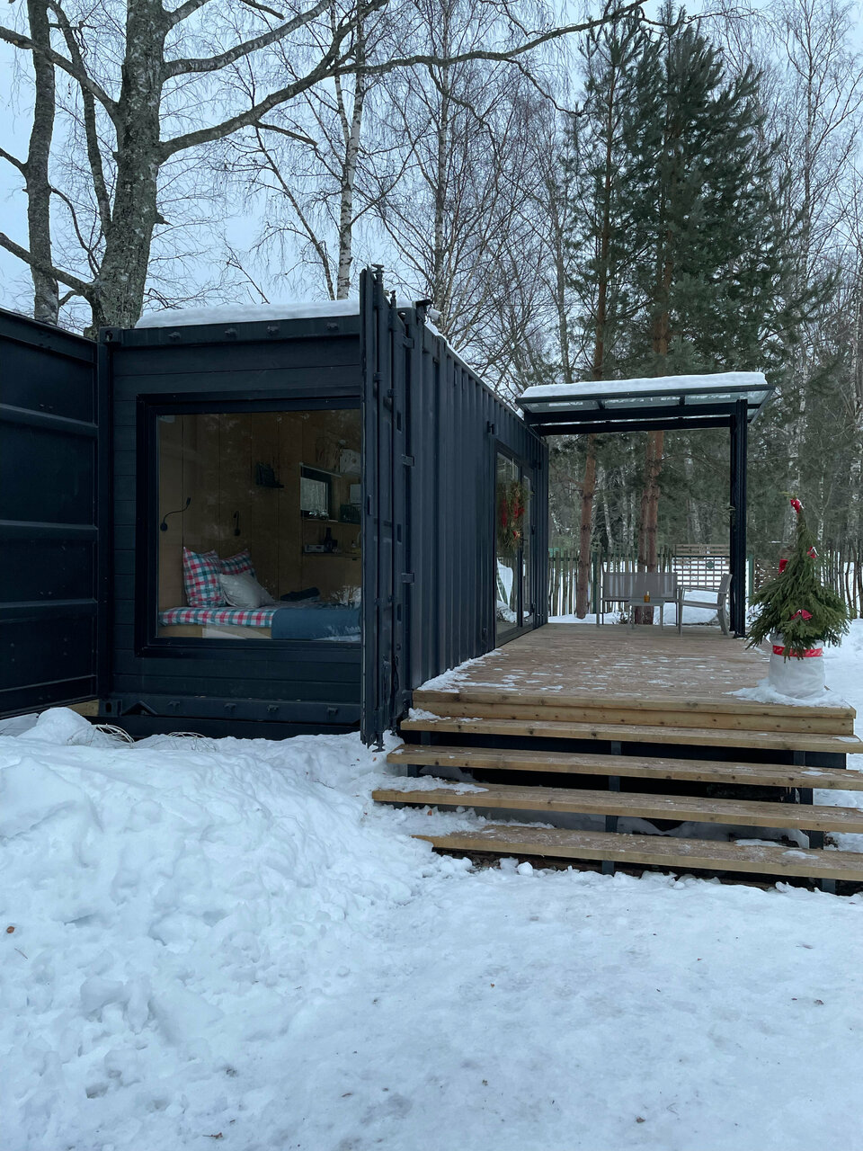 Имеем виды на берёзы — домик Mossa также сделан из морского контейнера, а его окна выходят на берёзовую чащу и каменную гряду с шапкой мха. Отсюда и название. Терраса расположена на солнечной стороне — идеальный вариант для любителей солнечных ван...