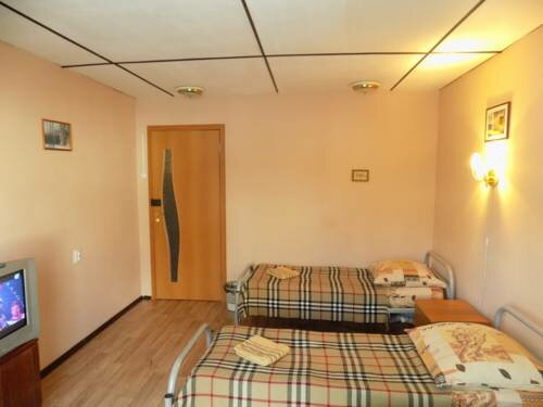 Переночевать одну ночь можно, но на долгое пребывание не рекомендую. По виду это выкупленные несколько квартир, ремонт похоже делался лет 15-20 назад, розетки выпадают и не держал з/у, временами коротят, в общем вся проводка видала лучшие времена, телевизоры-лучевые, туалетов 2 на все номера, один из них также и ванна.