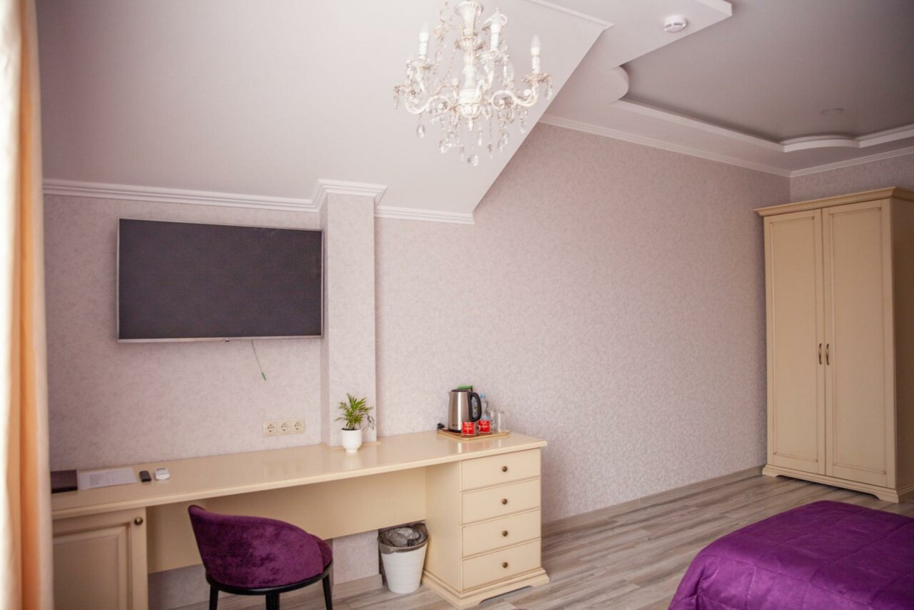Очень уютный, милый, чистый и гостеприимный отель! На фото, которые размещены на сайте, не передается красота и уют номера и самого отеля. В номере есть все необходимое для проживания. Имеется мини-бар с приятными ценами. На первом этаже кафе с приветливым персоналом и вкусной едой. Мангальные блюда на высшем уровне. Отдельное меню для завтрака. Каждый день в обеденное время бизнес ланч. Пятница и суббота активные вечера, с караоке до упаду) Нам очень понравилось! Рекомендуем!!!