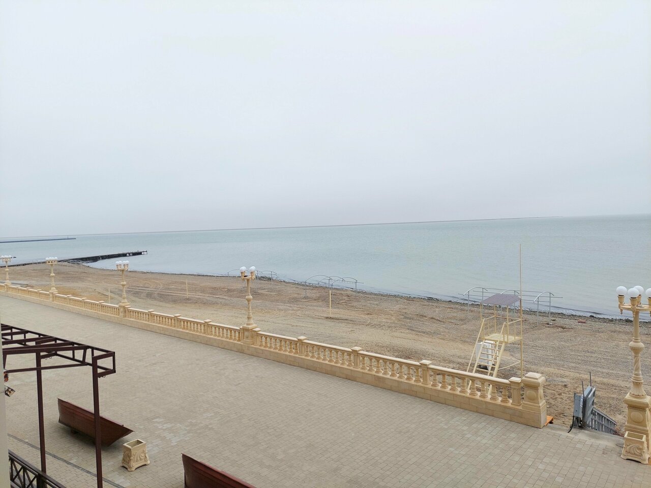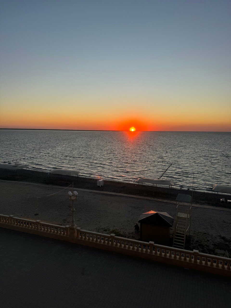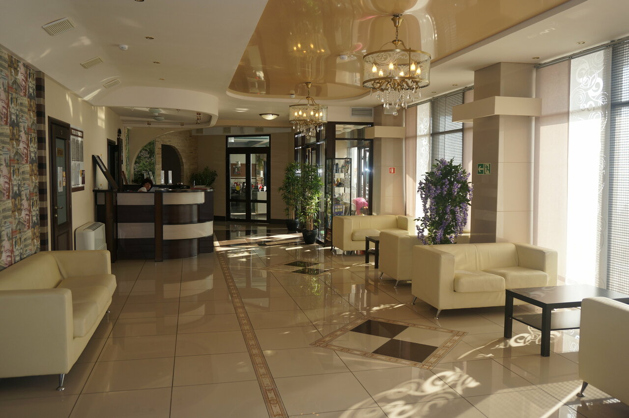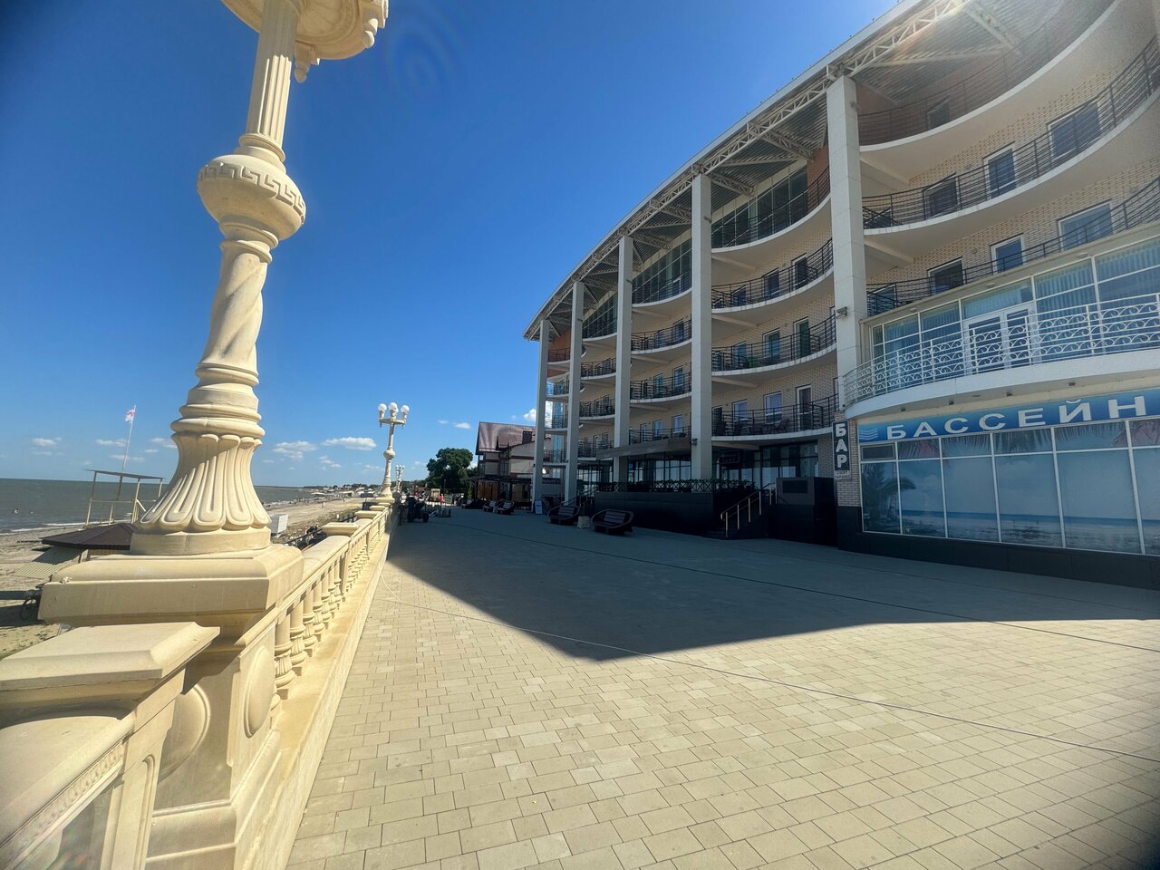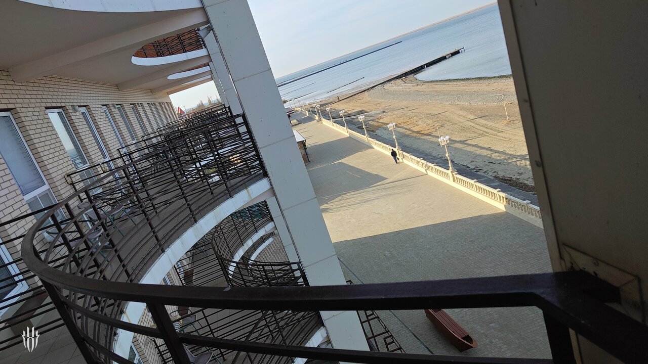 Самое большое здание на набережной города. Проживание и сама гостиница оставили хорошее впечатление. Гостиница европейского уровня. Чисто, уютно, комфортно. Ресепшн, холл, коридоры, номера, – просторные, чувствуется, что не экономили на квадратных метрах. Цена за проживание в одноместном номере 1700, в двухместном 3400 с завтраком,– это на 26.09.2024г. Просторные балконы с видом на море. Санузел раздельный. Мыльно-рыльных принадлежностей нет, тапочек нет, халата нет. Есть телефонный аппарат для связи с ресепшн и внешним миром и т.д., что есть обычно в гостиницах.