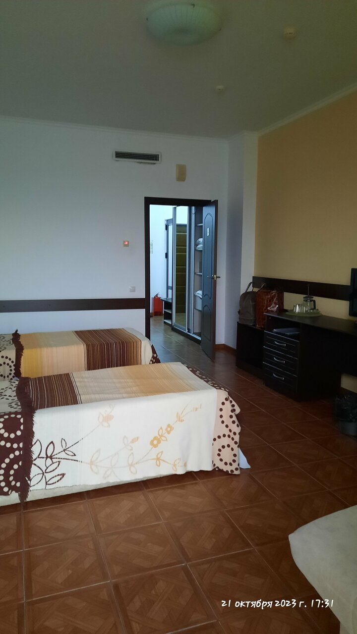 Были два раза. Первый раз в 2018 году, второй раз в августе 2023 года. Между этими датами пропасть. Раньше было отлично сейчас это сплошное разочарование. В номере убитый диван, туалетной бумаги нет, администратор, такое ощущение застыла в далёком прошлом. Злая, грубая женщина. Ечли ночью возникнет вопрос, задать не кому, в отеле только охранник, администратора нет. В кафе ужас. Такое ощущение, что про уборку там не слышали совсем. Завтрак, это дешевые блинчики и два слайса ветчины. Бассейн летом не работает, это вообще нонсенс. Видимо за окно не смотрят и не знают, что и летом, бывает портится погода. В целом, сервиса — ноль! Обходите стороной это место!