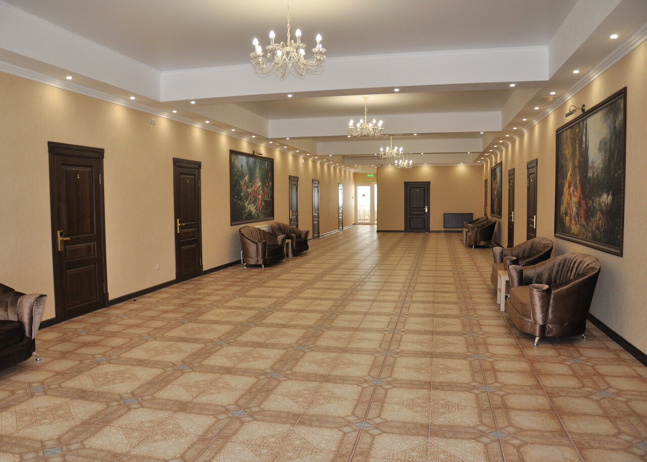 - Красивый интерьер (холл с картинами).