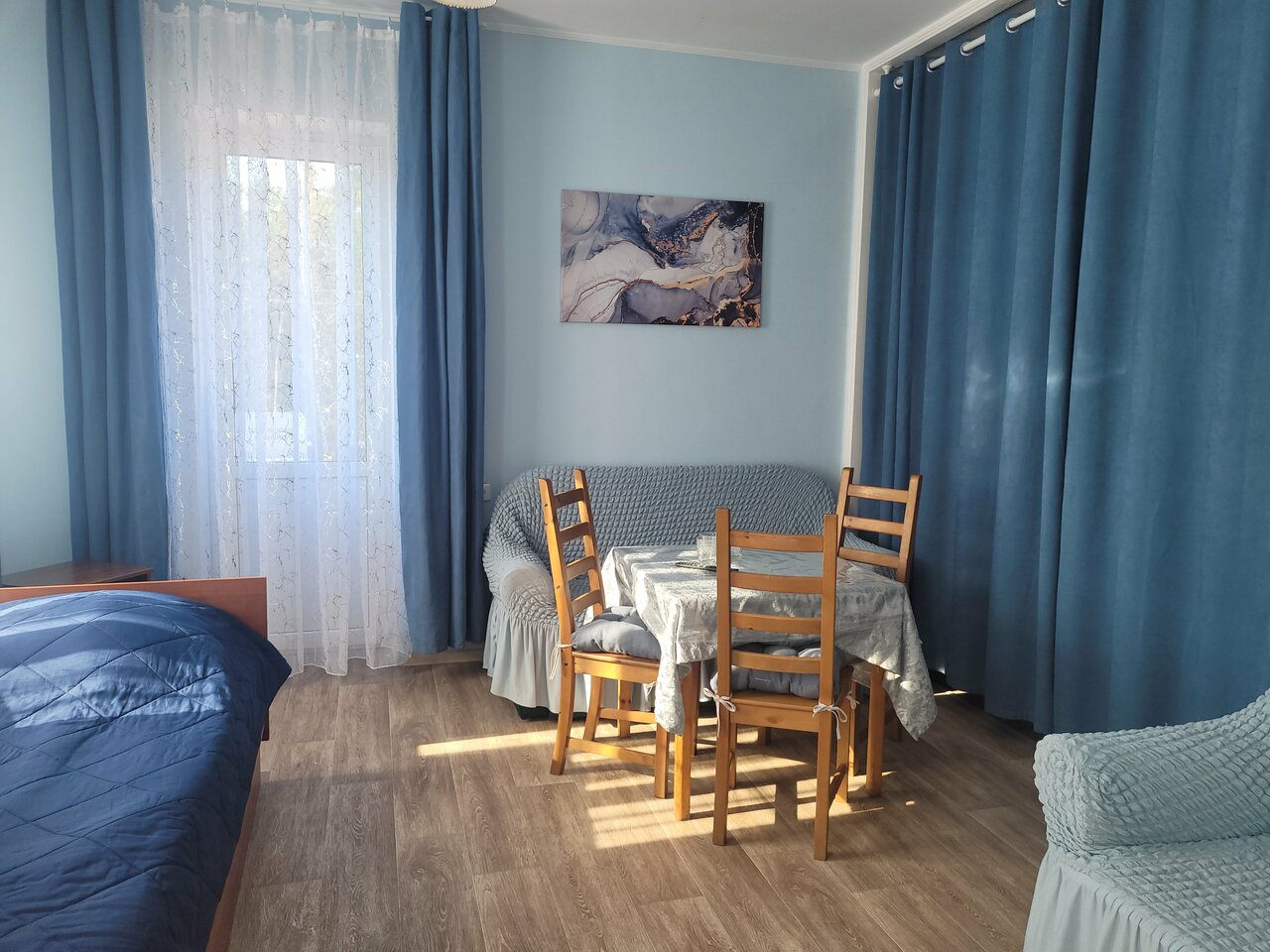 Выдержана в стиле советский союз) старый маленький телек, кандея нет, душ малюська. Но так в целом чисто все, есть кухонная маленькая на этаже. Пускают с животными, но наш волкодав чай хуа выбежал в коридор. Мы носили тарелки с кухни и не закрывали дверь, он и вышел. К нам подошёл каждый из служащих и сказал, что собаку в коридор выпускать нельзя. Собака была в коридоре минут 5 , а разговоров на пол часа, хотелось послать всех грубо. А так ничего особенного, рядом где то стая собак утром лаяла.